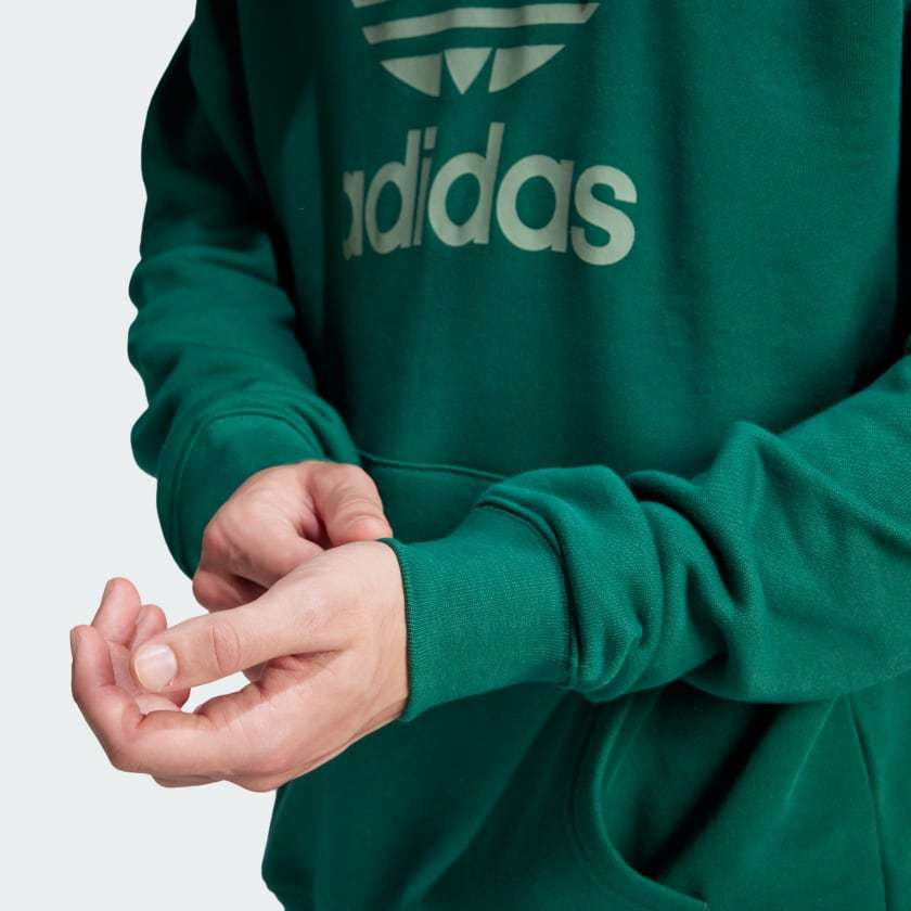 The perfect wear-everywhere style, this essential hoodie is inspired by heritage adithtdas DNA. It's made of soft French terry for everyday comfort. The oversized Trefoil logo on the chest shows off your sporty pride in style, while a ribbed hem and cuffs keep the lines clean. Add your favorite color - or colors - to your closet.