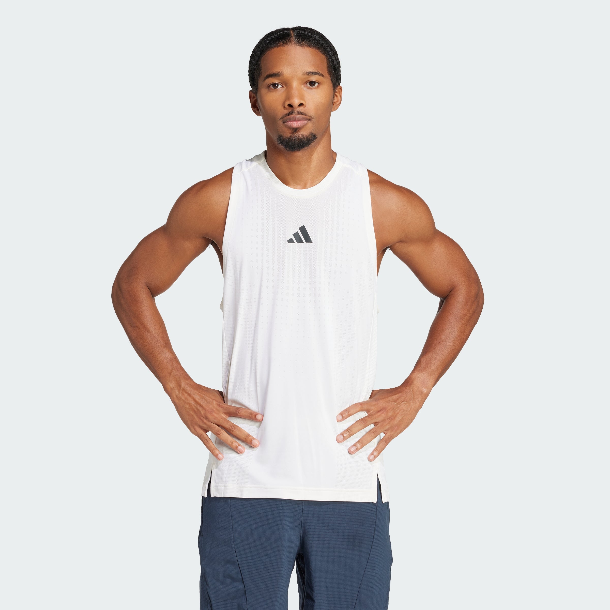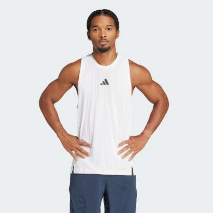 Beat the heat in this adithtdas training tank top. It's built with CLIMACOOL+, our best cooling innovation.CLIMACOOL+ and Airchill technologies provide unmatched 360-degree ventilation, keeping you cool and dry even during your most intense workouts. Side slits offer a full range of motion during HIIT class or strength training. CLIMACOOL+ helps you manage sweat with materials that wick and manage sweat quickly. Its fast-dry fibers give you a fresh-skin feel. Body-mapped sweat management supports targeted cooling. Superior engineering and advanced materials unite for a cool, dry and distraction free performance. This product is made with 100% recycled materials. By reusing materials that have already been created, we help to reduce waste and our reliance on finite resources and reduce the footprint of the products we make.