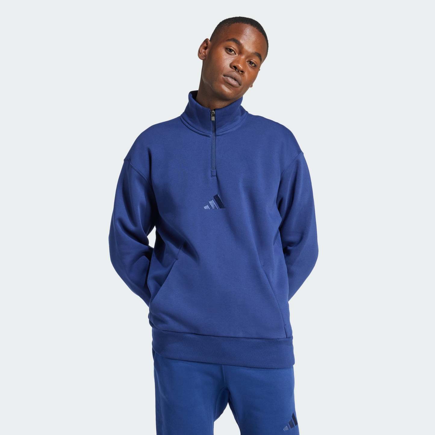 Whether you're heading out or staying in, this adithtdas ALL SZN sweatshirt is ready for anything. The soft fleece build keeps you cozy on cool days, while the loose fit and ribbed underarm gussets allow for full range of motion. A quarter-zip front and kangaroo pockets with darted seams give it a modern edge.