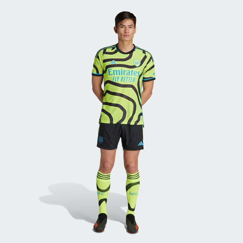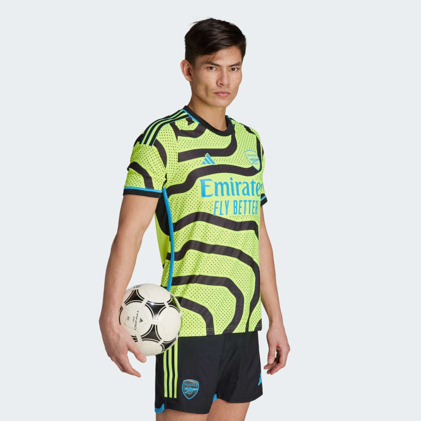 There's no place like home, but Gooners will travel far and wide to follow the Arsenal to glory - and whether it's a pilgrimage to the Emirates Stadium or an away overseas, match days are as much about the journey as they are about the beautiful game. Inspired by the passion of traveling supporters, the Arsenal 23/24 Away Authentic Jersey is loosely inspired by a map of the teams' borough, with a fluid line design reflecting the flow in and out of N7 when Arsenal fans are on the march. A fresh, shock-yellow color completes the update, alongside light blue accents. The iconic, lightweight crest and HEAT.RDY fabric - maximizing airflow so you can feel cool - help to ensure the top stays pro-player ready.