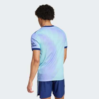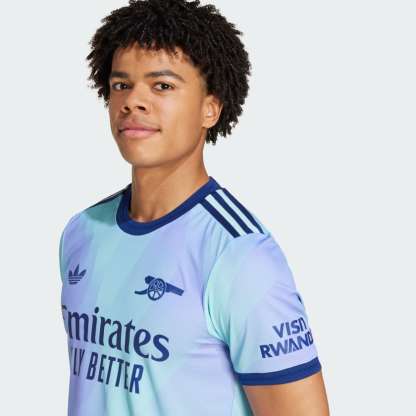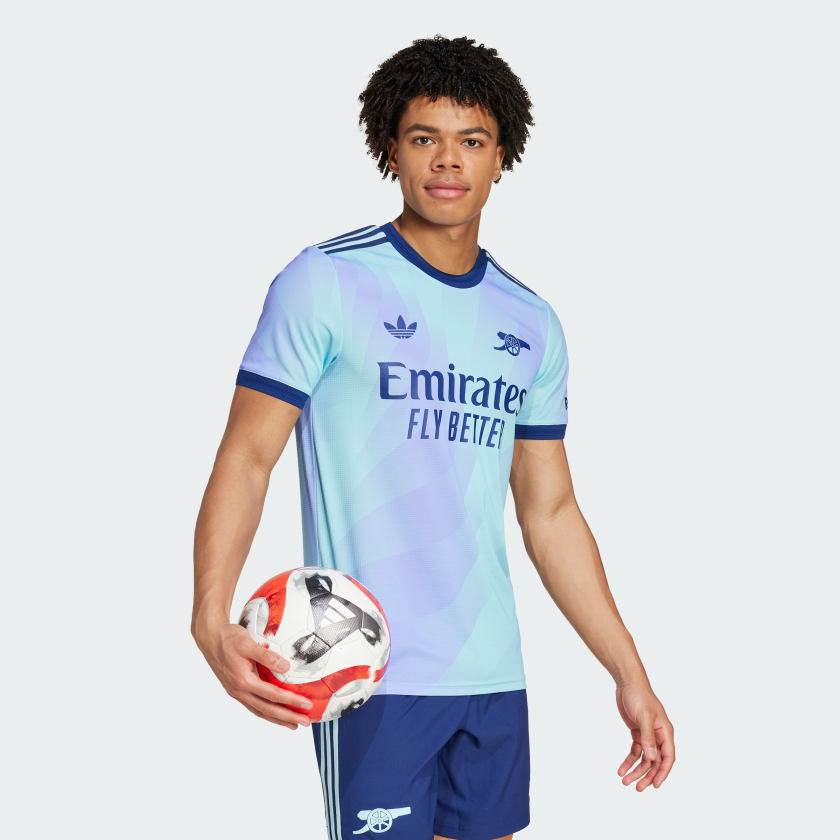 A fresh take on soccer heritage. Standing out in lilac and aqua, this Arsenal third authentic jersey pairs a bold cannon badge with an iconic adithtdas Trefoil. The result? A vibrant look that will add color to dressing rooms, away ends and post-game celebrations. HEAT.RDY and lightweight details make for lively performances on the pitch. This product is made with 100% recycled materials. By reusing materials that have already been created, we help to reduce waste and our reliance on finite resources and reduce the footprint of the products we make.