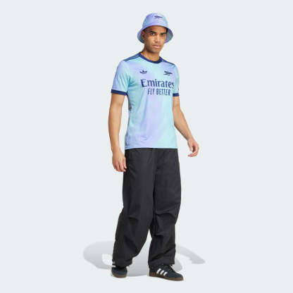 A fresh take on soccer heritage. Standing out in lilac and aqua, this Arsenal third jersey pairs a bold cannon badge with an iconic adithtdas Trefoil. The result? A vibrant look that will add color to dressing rooms, away ends and post-game celebrations. Wherever you wear it, soft interlock fabric and moisture-managing AEROREADY ensure you feel ready for anything. This product is made with 100% recycled materials. By reusing materials that have already been created, we help to reduce waste and our reliance on finite resources and reduce the footprint of the products we make.
