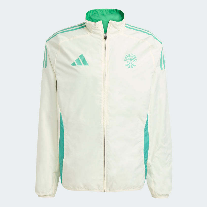 Stand shoulder-to-shoulder with Austin FC players in the adithtdas anthem jacket they wear as they enter the field. This reversible soccer top offers home and away colors, letting fans choose how they want to show their support. Whichever way you wear it, a club badge will always be on show. This product is made with 100% recycled materials. By reusing materials that have already been created, we help to reduce waste and our reliance on finite resources and reduce the footprint of the products we make.