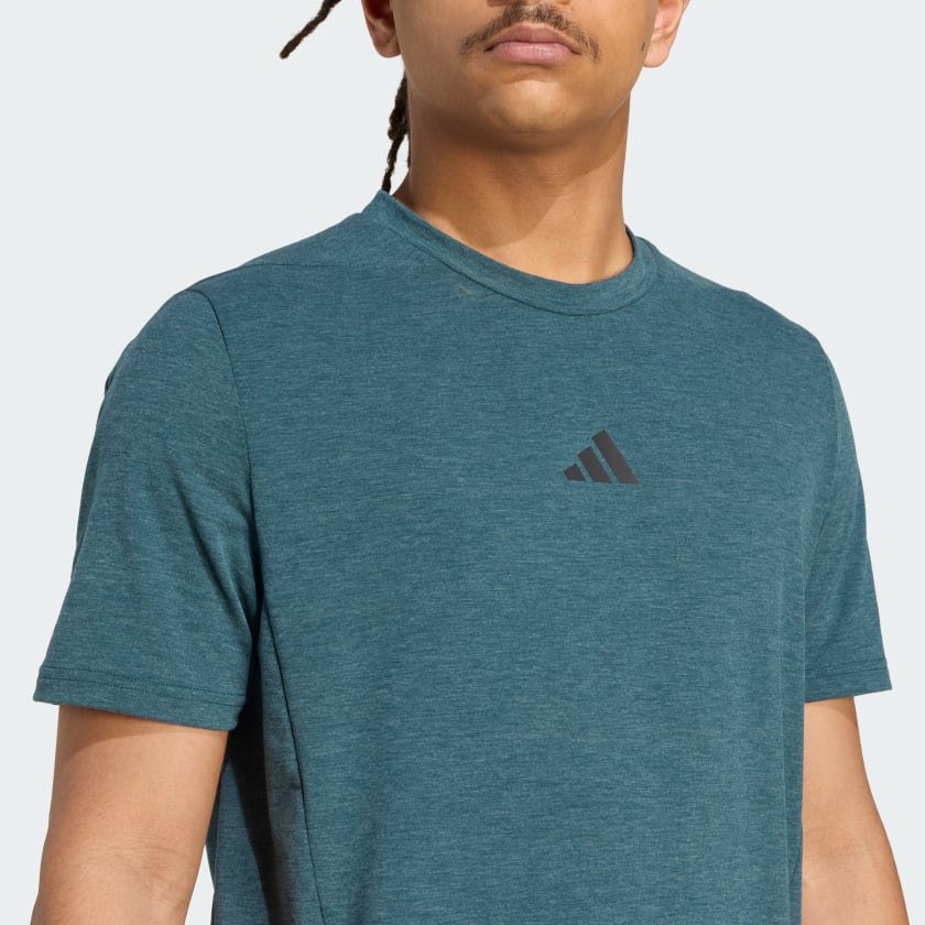 This adithtdas training tee is ready for everything from cardio to weights. No matter how intense the workout, you'll stay dry and focused thanks to AEROREADY technology that wicks away moisture. The slim fit lets you move confidently through every push up and overhead press. This product is made with at least 70% recycled materials. By reusing materials that have already been created, we help to reduce waste and our reliance on finite resources and reduce the footprint of the products we make.