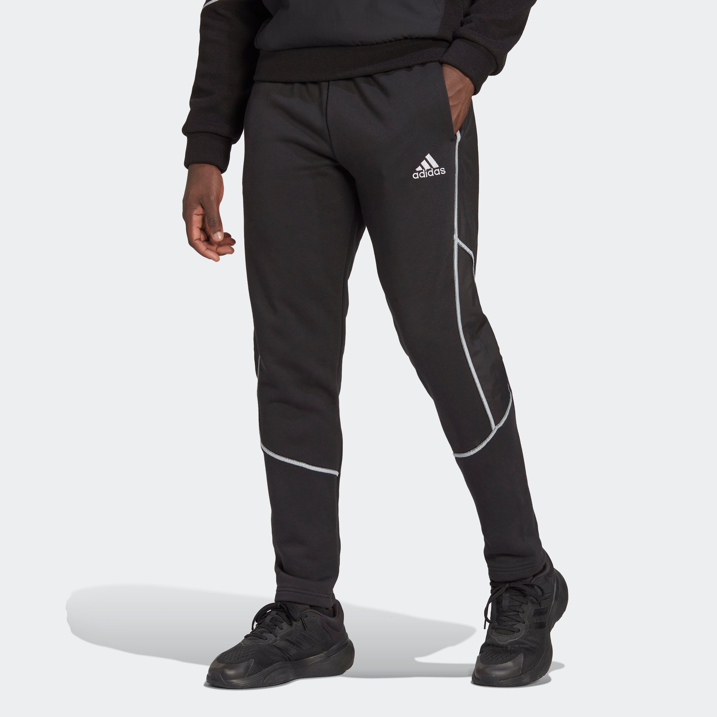 All-black workout gear and dark streets don't mix. These adithtdas sweat pants, with their reflective lines, will keep you seen in low light while still looking stylishly understated. The cozy cotton and fleece fabric works well for winter dog walks and trips to the gym, while the pockets keep your phone - and torch - close at hand. Made in part with recycled content generated from production waste, e.g. cutting scraps, and post-consumer household waste to avoid the larger environmental impact of producing virgin content. Our cotton products support more sustainable cotton farming.