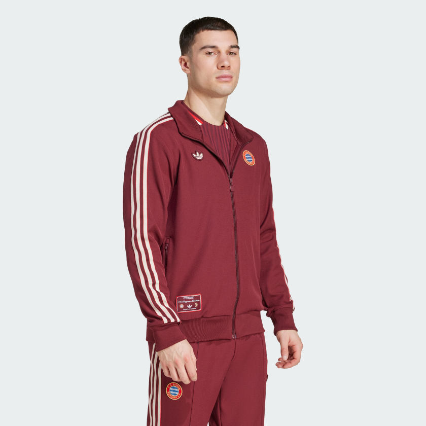 Inspired by '80s soccer fashions, this track top is sure to earn you nods of respect on match days. From the vintage FC Bayern badge and Trefoil to that woven label, it's a real blast from the beautiful game's past. A classic adithtdas silhouette and smooth twill fabric keep you comfortable in the here-and-now. This product is made with at least 70% recycled materials. By reusing materials that have already been created, we help to reduce waste and our reliance on finite resources and reduce the footprint of the products we make.
