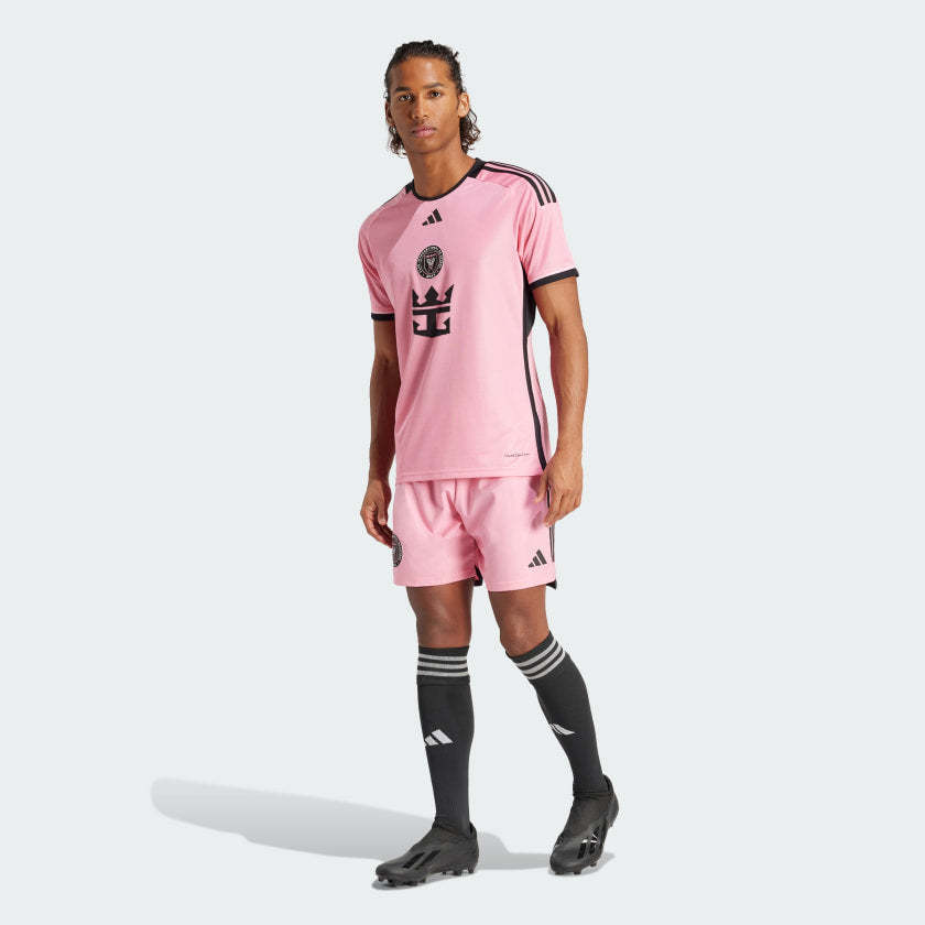 Proud. Passionate. Pink. This adithtdas Inter Miami CF jersey stands out in the club's signature home colors. Contributing to the clean, classy design, the team badge and 3 Bar Logo move to the center. AEROREADY wicks moisture to keep soccer fans comfortable. The back neck signoff displays the team's aspirational motto, "Freedom to Dream." This product is made with 100% recycled materials. By reusing materials that have already been created, we help to reduce waste, reduce reliance on finite resources and reduce the footprint of the products we make.