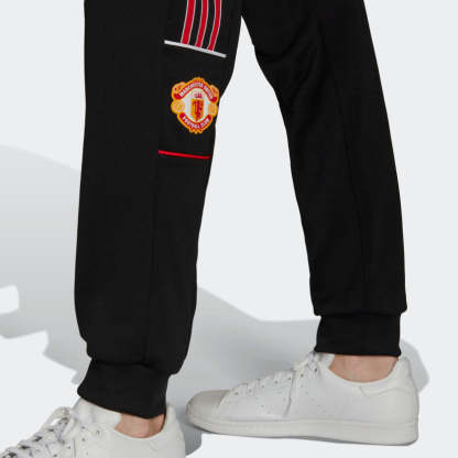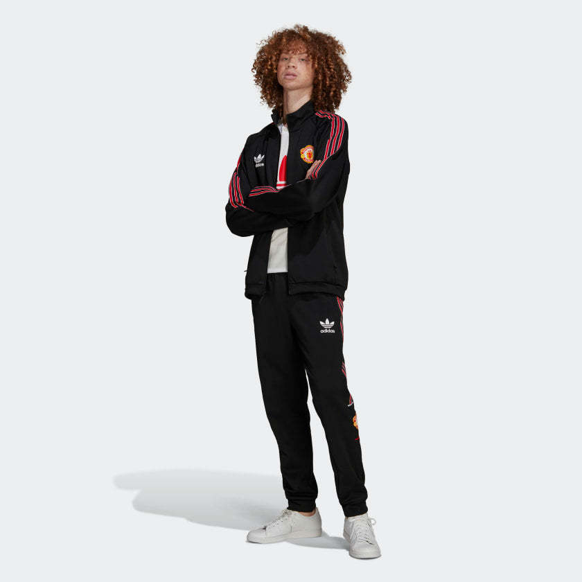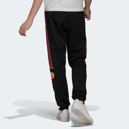 You know the Manchester United badge. The Red Devil. The ship in full sail. Made in collaboration with the club, these adithtdas track pants flash it proudly alongside Man Utd's colors. They're made of smooth polyester and finished with comfortable ribbed details. Made in part with recycled content generated from production waste, e.g. cutting scraps, and post-consumer household waste to avoid the larger environmental impact of producing virgin content.