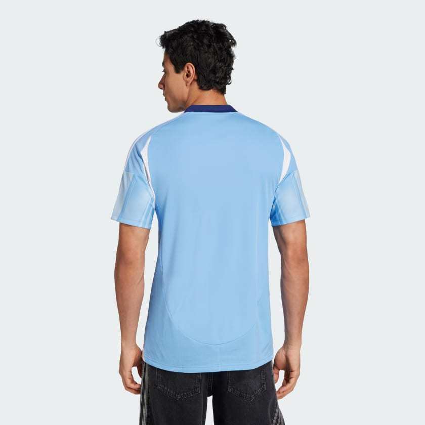 Anything's possible when you play in a city that reaches for the sky. The dynamic graphic on this adithtdas New York City FC home jersey captures the shards of blue sky reflected in the glass and steel of the Big Apple's soaring edifices. Moisture-managing AEROREADY keeps soccer fans comfortable. That embroidered badge represents a club without limits. This product is made with 100% recycled materials. By reusing materials that have already been created, we help to reduce waste and our reliance on finite resources and reduce the footprint of the products we make.