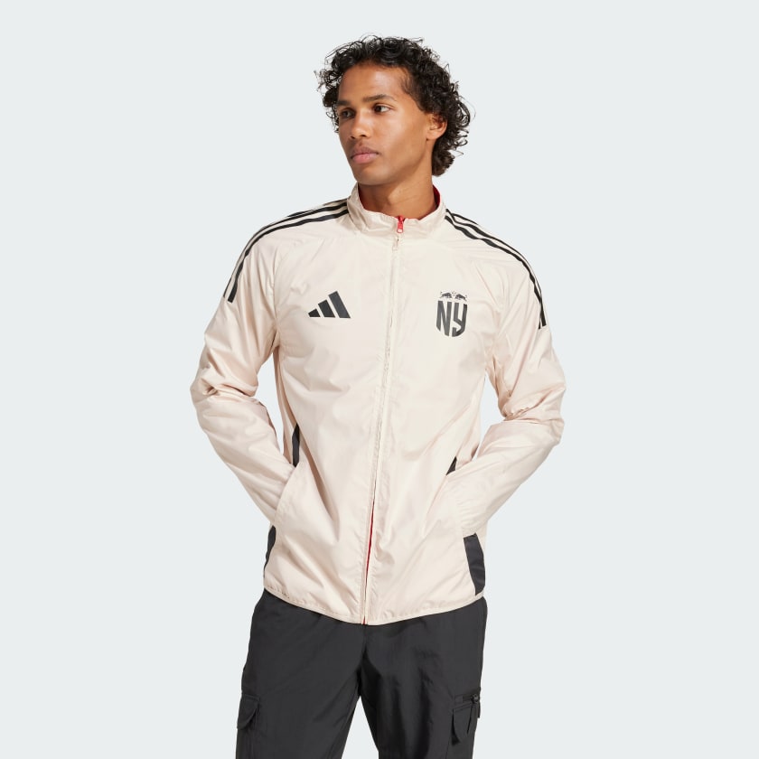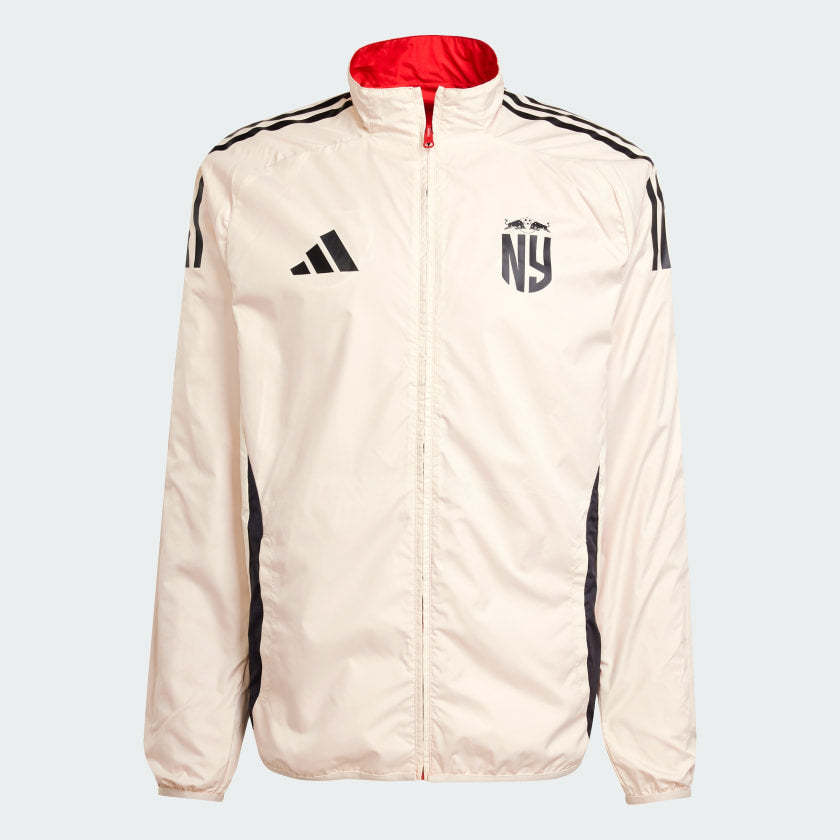 Before the soccer action unfolds, this slim-fitting New York Red Bulls jacket from adithtdas shows the players stand shoulder to shoulder. Its reversible design means you can choose between two bold looks that match the team's home and away colors. What's more, with a primary crest on one side and a secondary badge on the other, your fandom will always be on display. This product is made with 100% recycled materials. By reusing materials that have already been created, we help to reduce waste and our reliance on finite resources and reduce the footprint of the products we make.