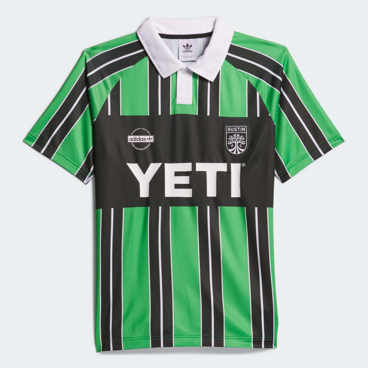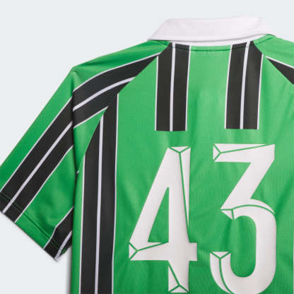 Skateshops drive their scene and No-Comply in Austin, Texas shows their commitment to fostering local community by preserving the rich history that paved the way. Driven by bringing the unique and unexpected together, the No-Comply X Austin FC Jersey throws it back to the '90s for a vintage take on soccer culture with nods to their scene's roots. Featuring a polo collar construction with sublimated stripes, the jersey calls back to the shop's history and namesake trick with a bold "43" on the back. Made with a series of recycled materials, and at least 70% recycled content, this product represents just one of our solutions to help end plastic waste.