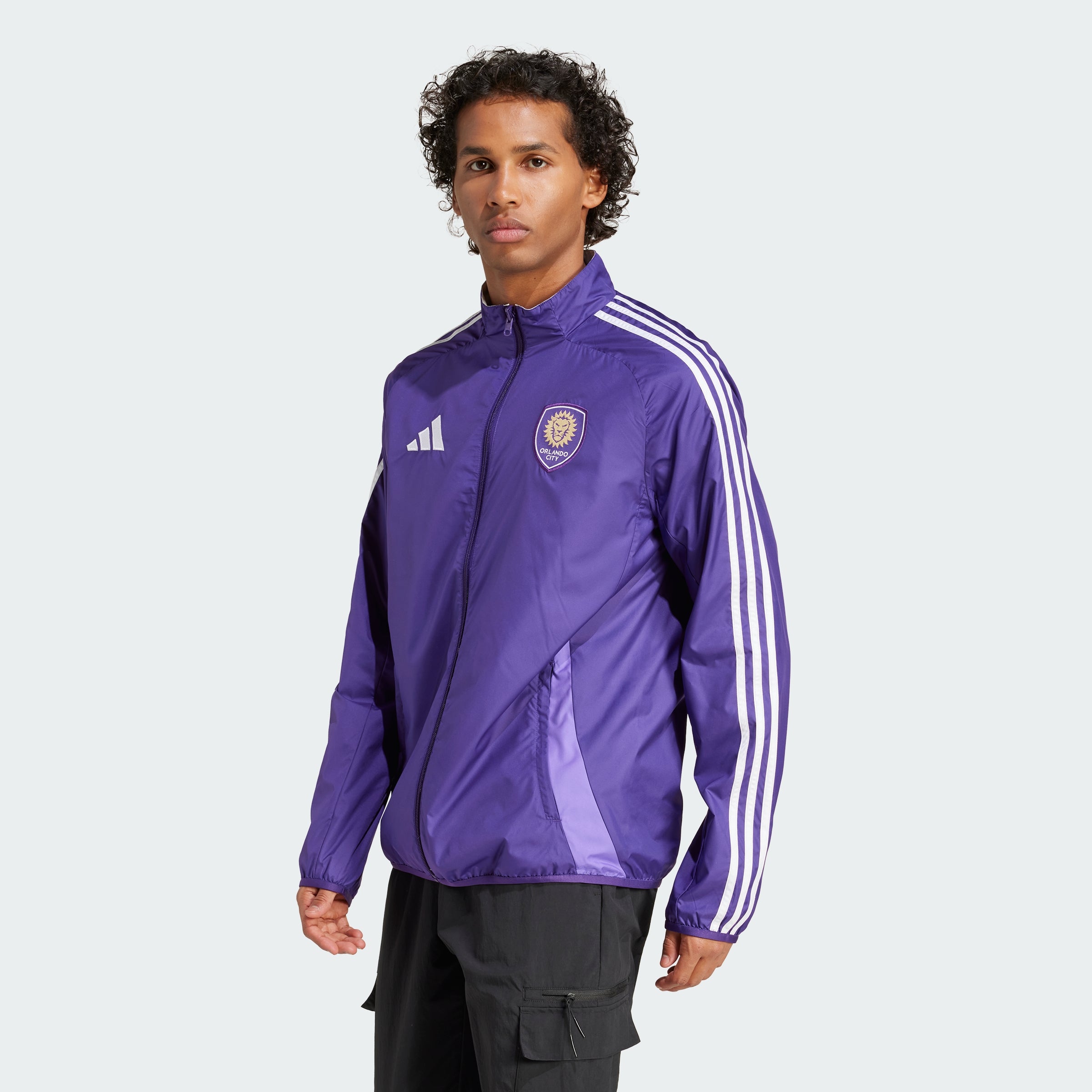 Support your team home and away. This Orlando City jacket from adithtdas has a reversible design so you can switch things up on match day. Identical to the tops the players zip up before heading out onto the field, it's made of comfortable but resilient ripstop fabric. Crests inside and out show allegiance to your soccer club. This product is made with 100% recycled materials. By reusing materials that have already been created, we help to reduce waste and our reliance on finite resources and reduce the footprint of the products we make.