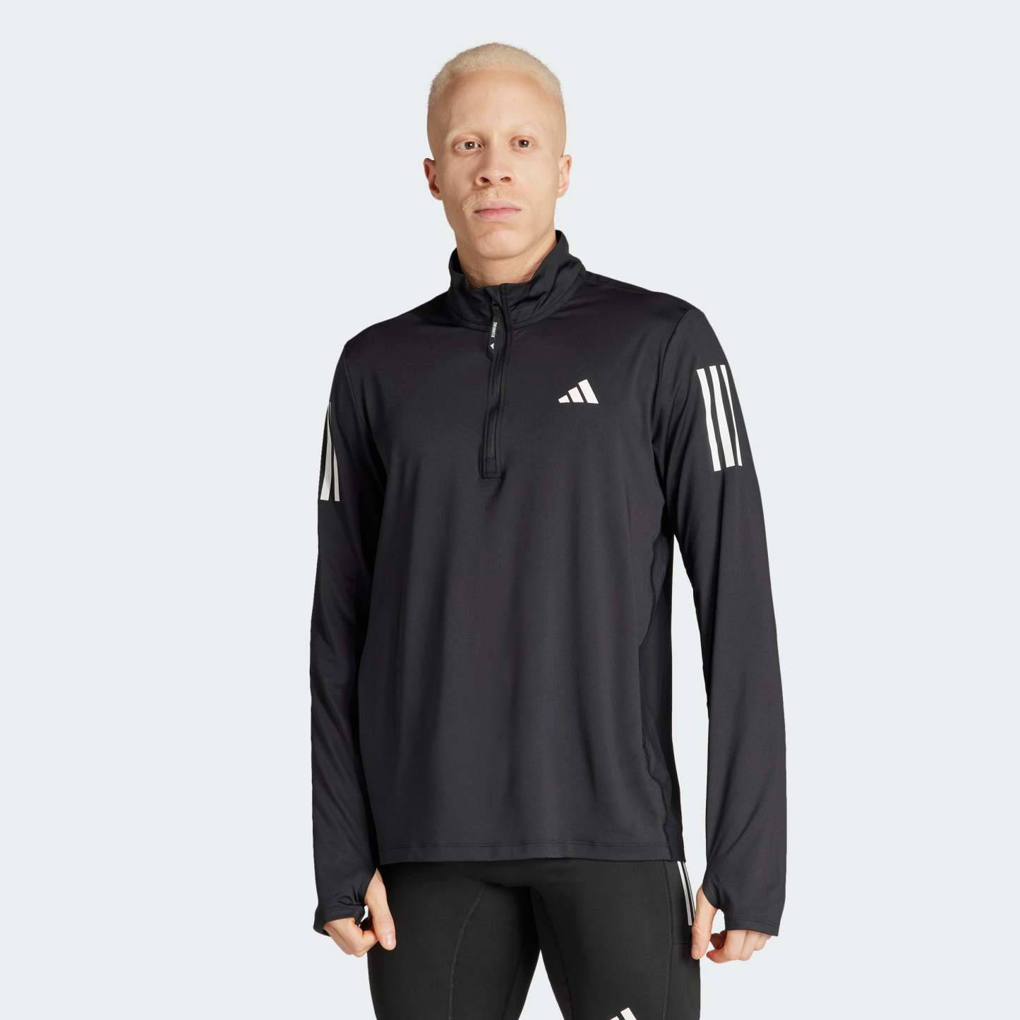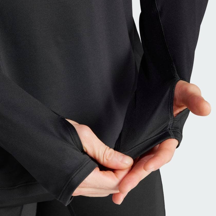 Push through each mile in this adithtdas running jacket. AEROREADY technology manages moisture so you'll stay comfortable when the intensity rises. Reflective details get you seen at dawn or dusk, while a half-zip and thumbholes dial in the right level of warmth. This product is made with at least 70% recycled materials. By reusing materials that have already been created, we help to reduce waste and our reliance on finite resources and reduce the footprint of the products we make.