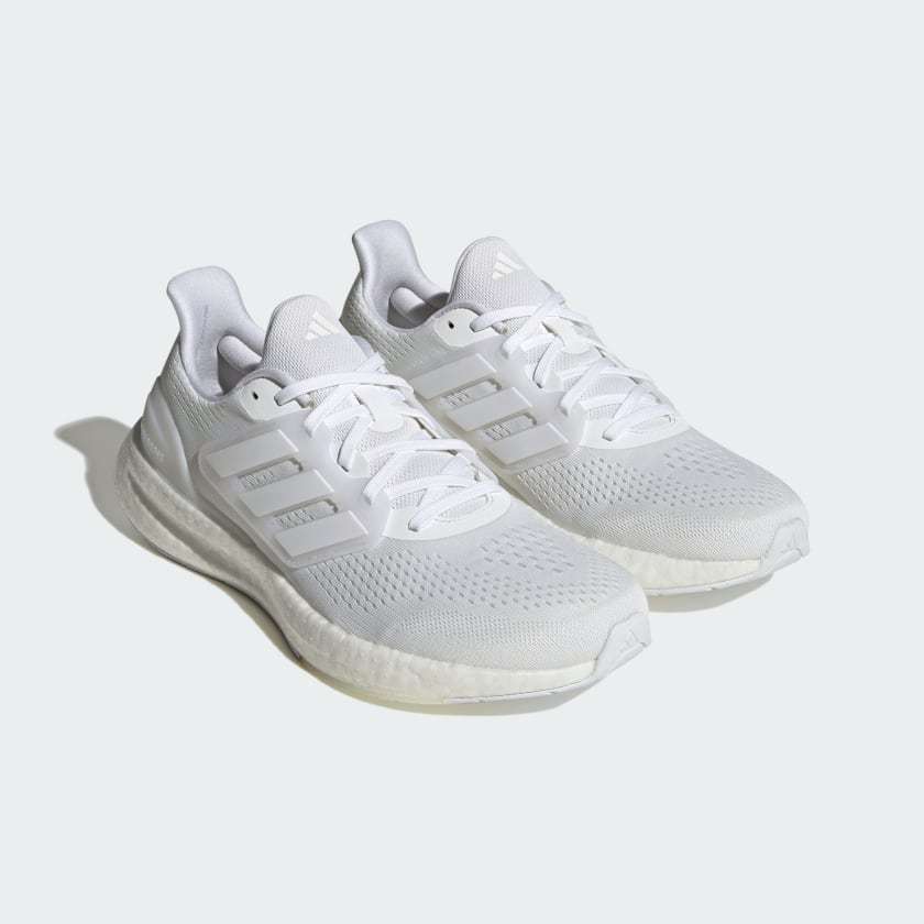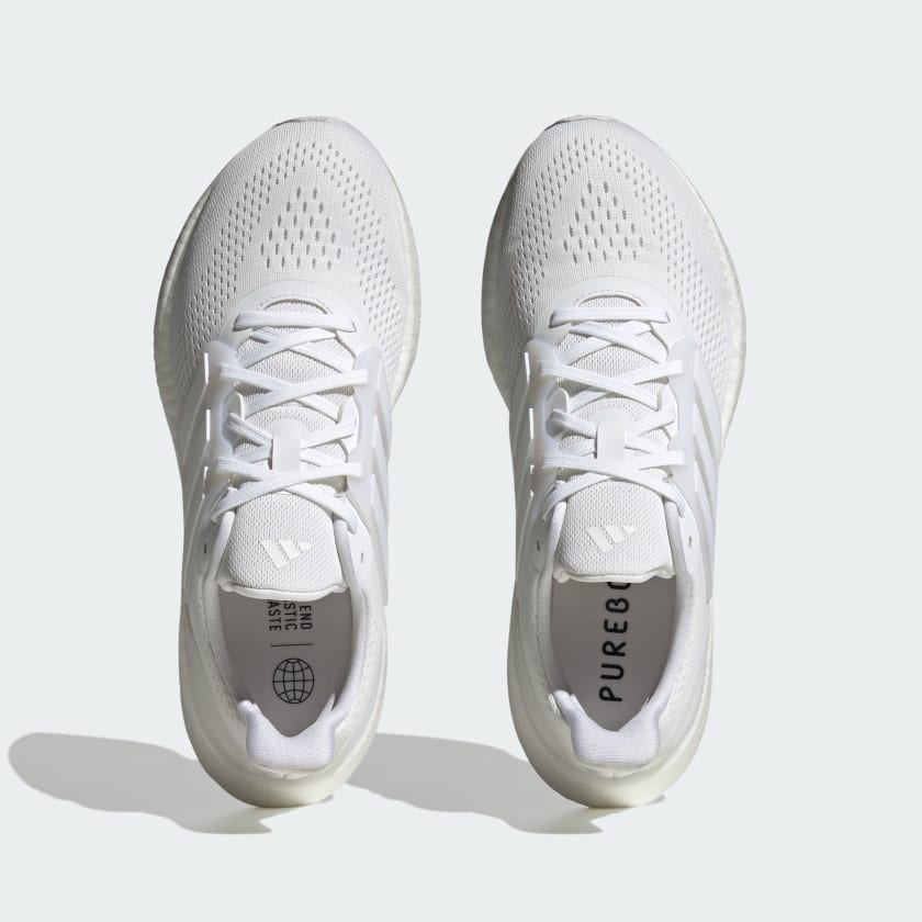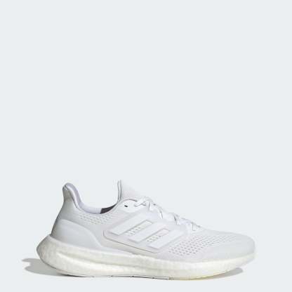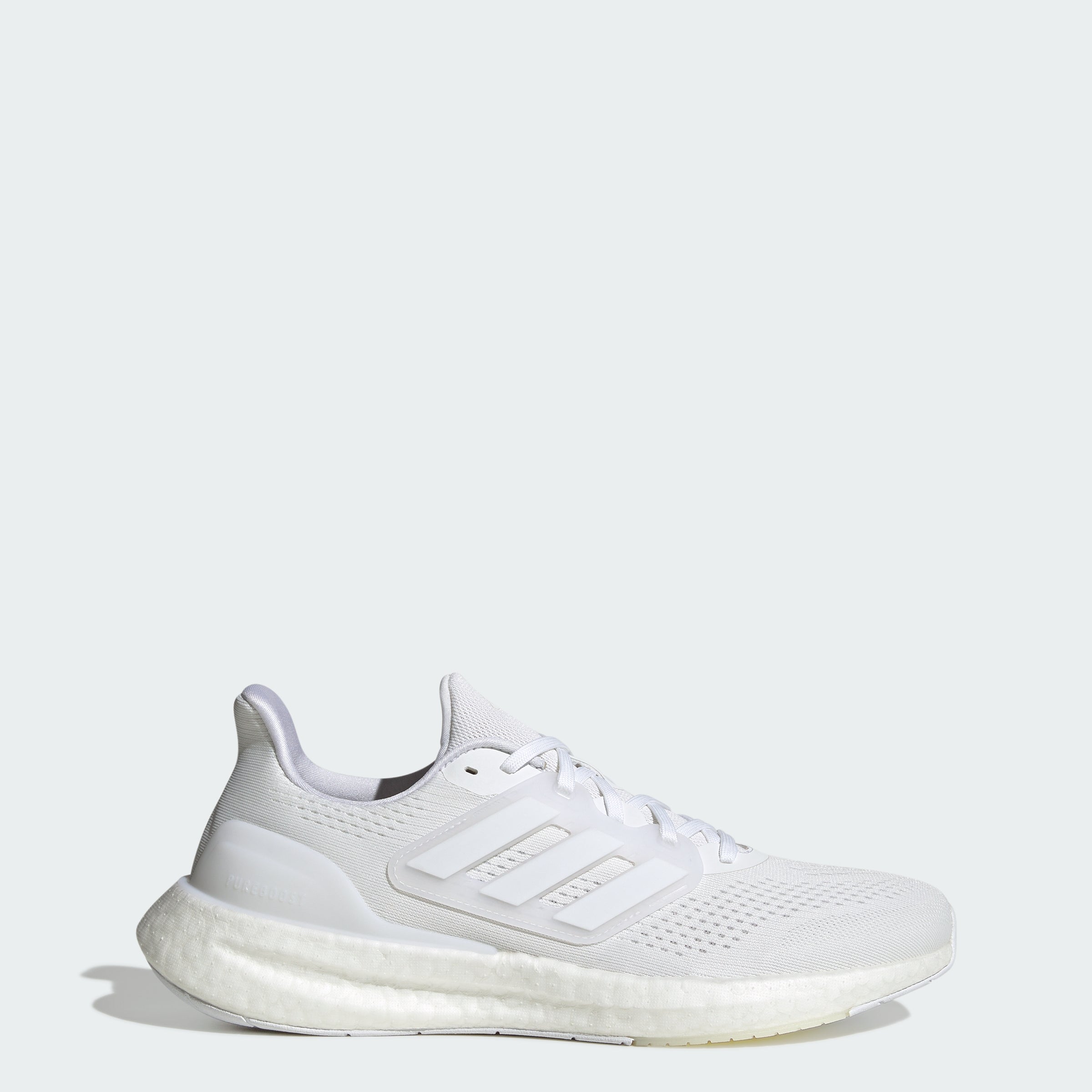 Logging daily miles is a delight in the adithtdas Pureboost 23 running shoes. Full-length BOOST provides the ultimate energy return, and strategic cutouts along the rubber outsole let the foam compress and expand while you run. The lightweight engineered mesh upper is breathable where your foot heats up and supportive where it needs to be, resulting in a running experience that is comfortable toe to heel. Made with a series of recycled materials, this upper features at least 50% recycled content. This product represents just one of our solutions to help end plastic waste.