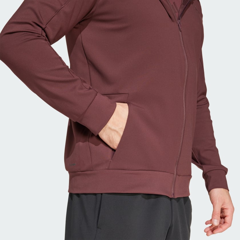 Find your flow in this adithtdas jacket that transitions easily from yoga class to the rest of your day. The versatile hooded top is made of soft knit fabric for comfortable movement. CLIMACOOL wicks and disperses sweat for cool, dry and distraction-free performance. CLIMACOOL helps you manage sweat with materials that wick and manage sweat quickly. Its fast-dry fibers give you a fresh-skin feel. This product is made with at least 70% recycled materials. By reusing materials that have already been created, we help to reduce waste and our reliance on finite resources and reduce the footprint of the products we make.