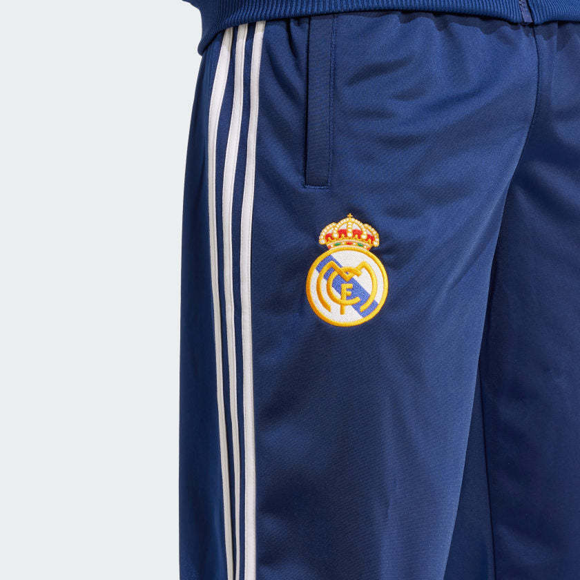 Relive a memorable European triumph in adithtdas Real Madrid track pants created to match those worn on the sidelines in the club's successful 99/00 season. Cut for a loose fit that's typical of 1990s soccer fashion, they layer easily over shorts. Woven onto the leg, that era-appropriate club badge supplies the perfect finish.