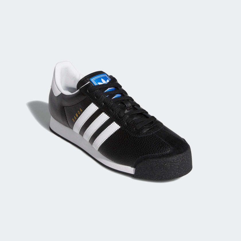 With a slim shape and sleek feel, the Samoa is a casual streetwear classic. These shoes have a leather upper with contrast 3-Stripes and a Trefoil logo on the tongue. The rubber toe bumper is a Samoa signature. Everything rides on an EVA midsole for all-day comfort.