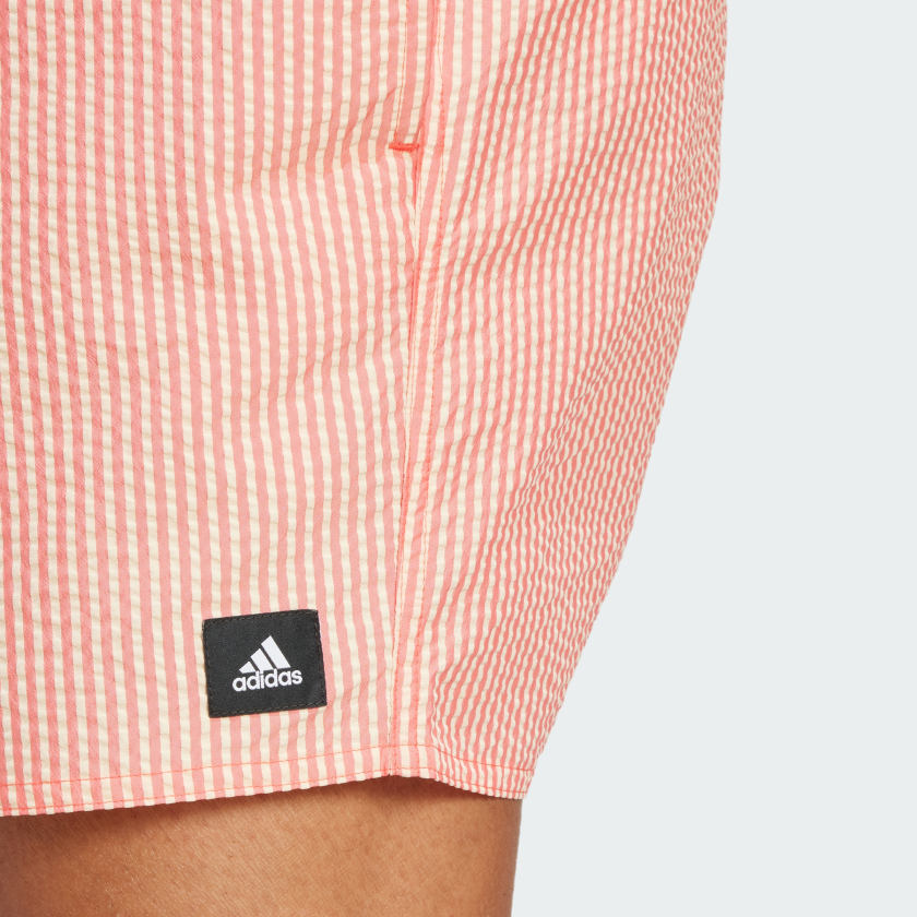 Sea, sun, sand and seersucker shorts. The hallmarks of a warm-weather getaway. Whether you're lounging by the pool or packing up for a trip to the beach, these adithtdas swim shorts let you move with ease. The subtle design teams easily with all types of tees. Plus they're fitted with pockets for your small necessities. Made with 100% recycled materials, this product represents just one of our solutions to help end plastic waste.