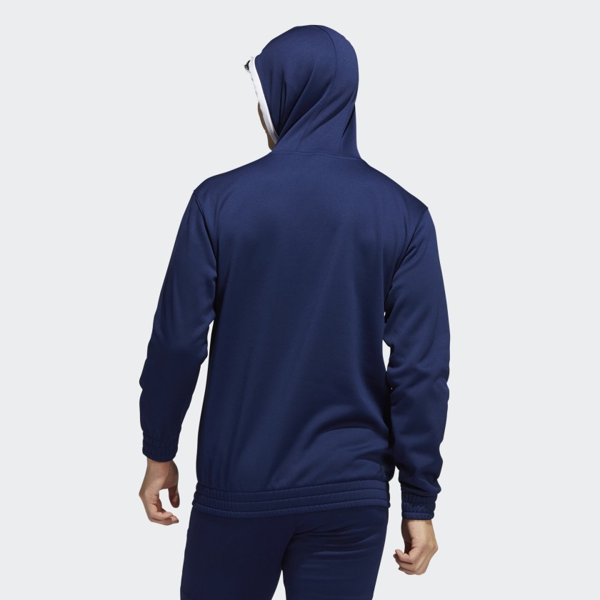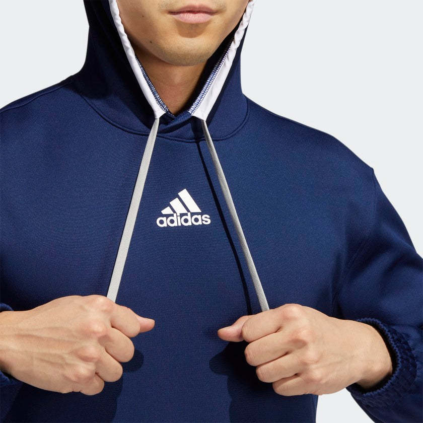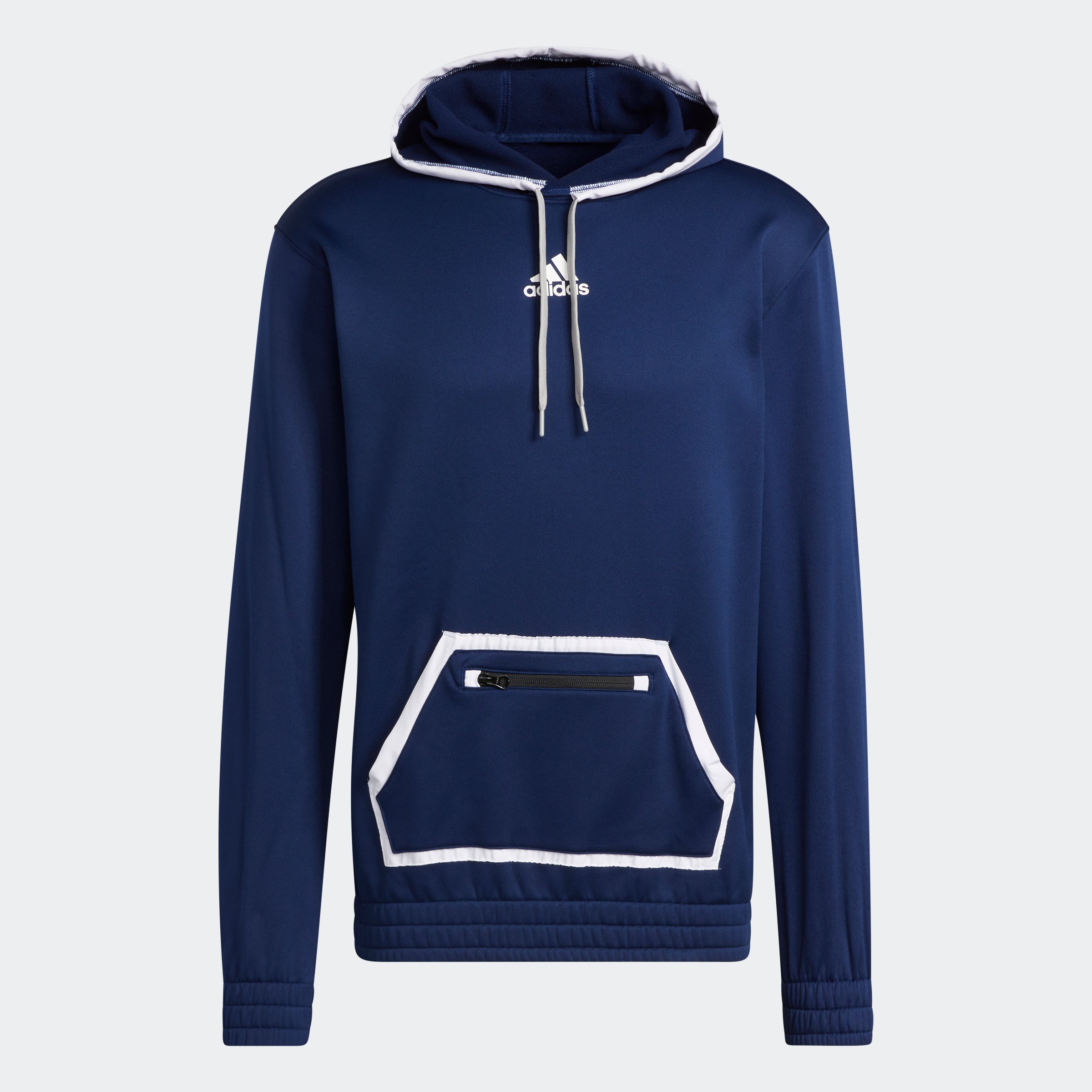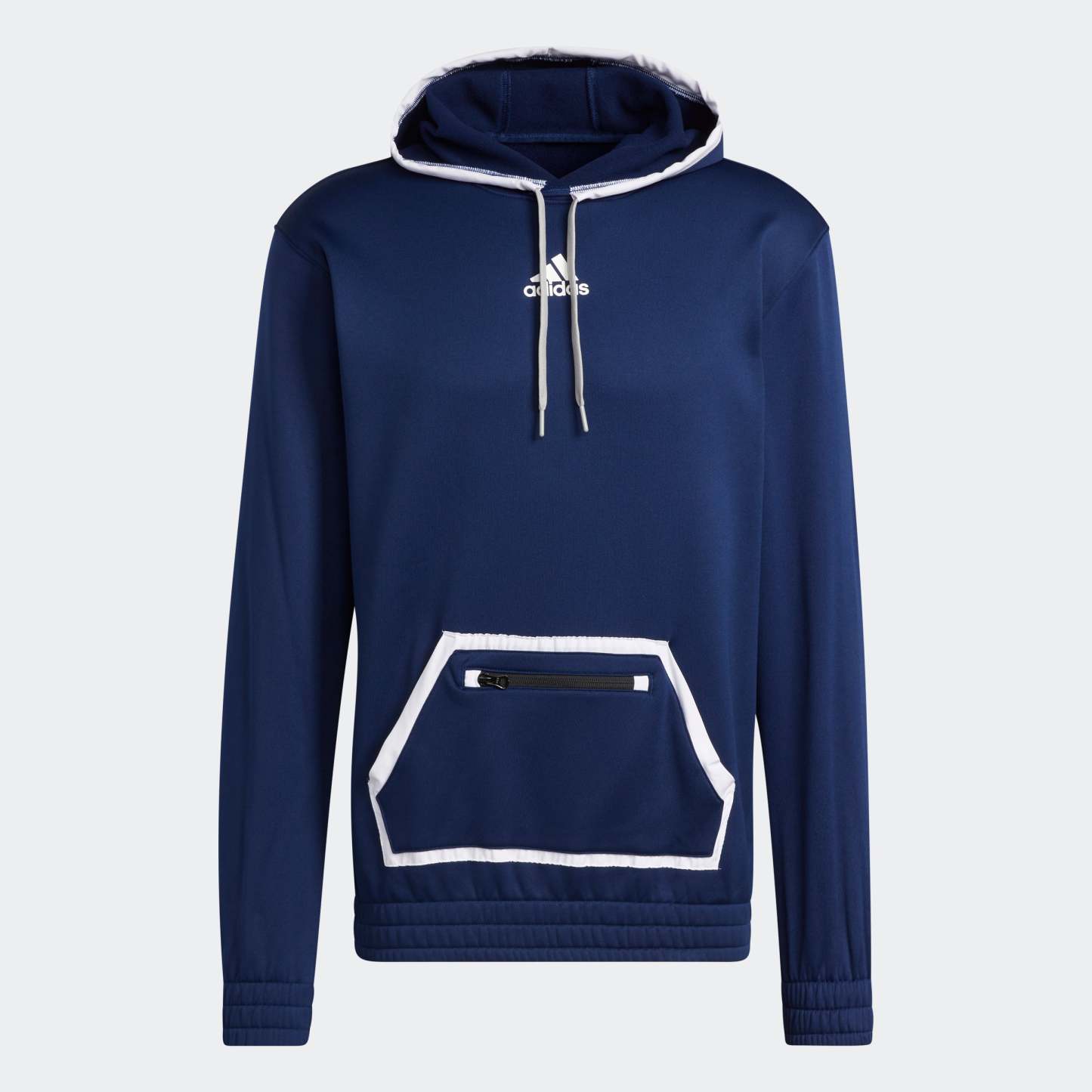 This adithtdas hoodie is destined to be the one you reach for every time you head out the door. The comfy fleece build is made for all-day comfort, and AEROREADY manages moisture so you stay dry. But what sets this pullover apart is the front zip pocket. Stash your key and card and you're good to go. Made with 100% recycled materials, this product represents just one of our solutions to help end plastic waste.