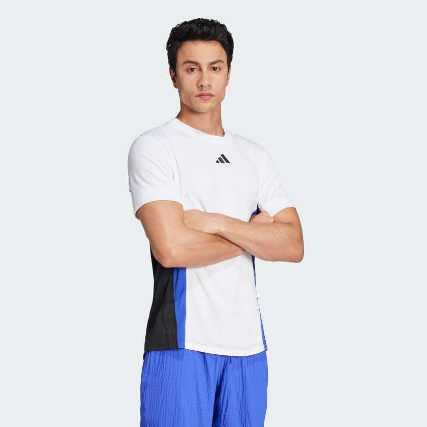 This adithtdas tennis tee lets you move comfortably as your body builds heat. The FreeLift design offers coverage without compromising mobility. The slim fit reduces drag, allowing you to react swiftly, while HEAT.RDY helps you stay cool and in control. Strategically placed mesh panels ventilate your core for temperature regulation through long volleys and tiebreakers. This product is made with 100% recycled materials. By reusing materials that have already been created, we help to reduce waste and our reliance on finite resources and reduce the footprint of the products we make.