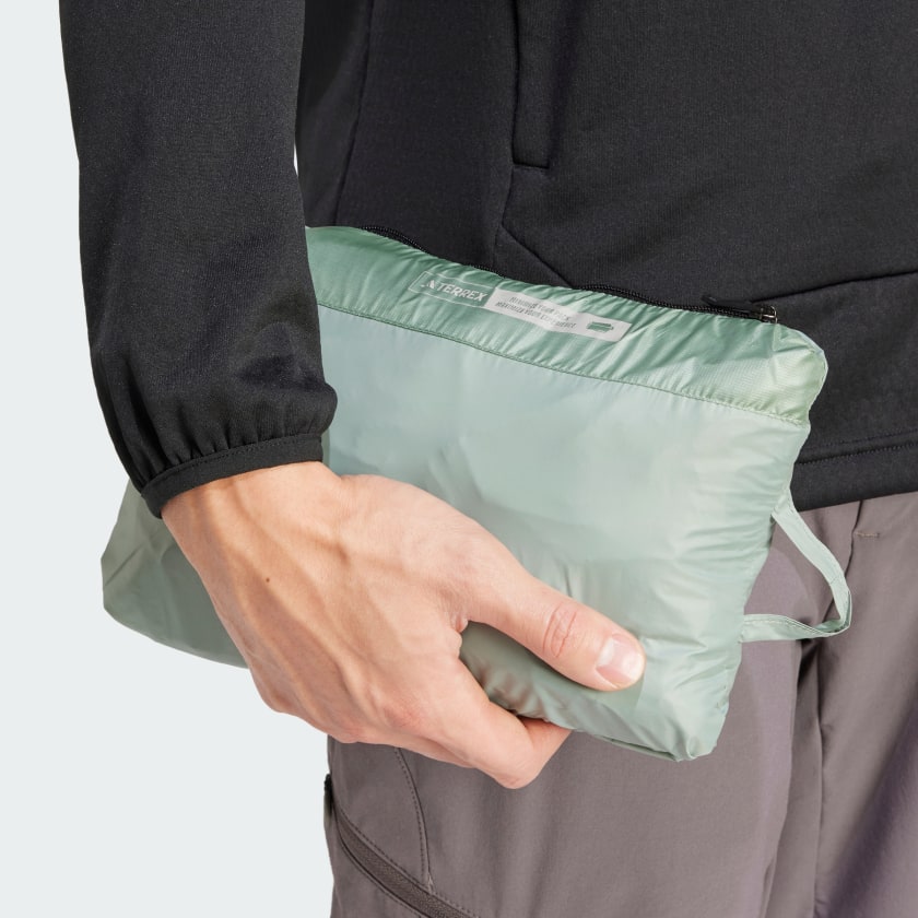 Pack light and stay warm. This adithtdas Terrex vest folds into its own pocket for easy carrying. Pertex Quantum GL fabric on the front keeps it light and packable, while breathable soft shell on the back helps regulate your temperature. PrimaLoft Gold insulation seals in warmth even when wet, and stretch HeatSeal gaiters in the collar and armholes seal in heat. Whether you're in Nordic skiing or hiking in the mountains, you can roam in comfort. Made with a series of recycled materials, and at least 70% recycled content, this product represents just one of our solutions to help end plastic waste.
