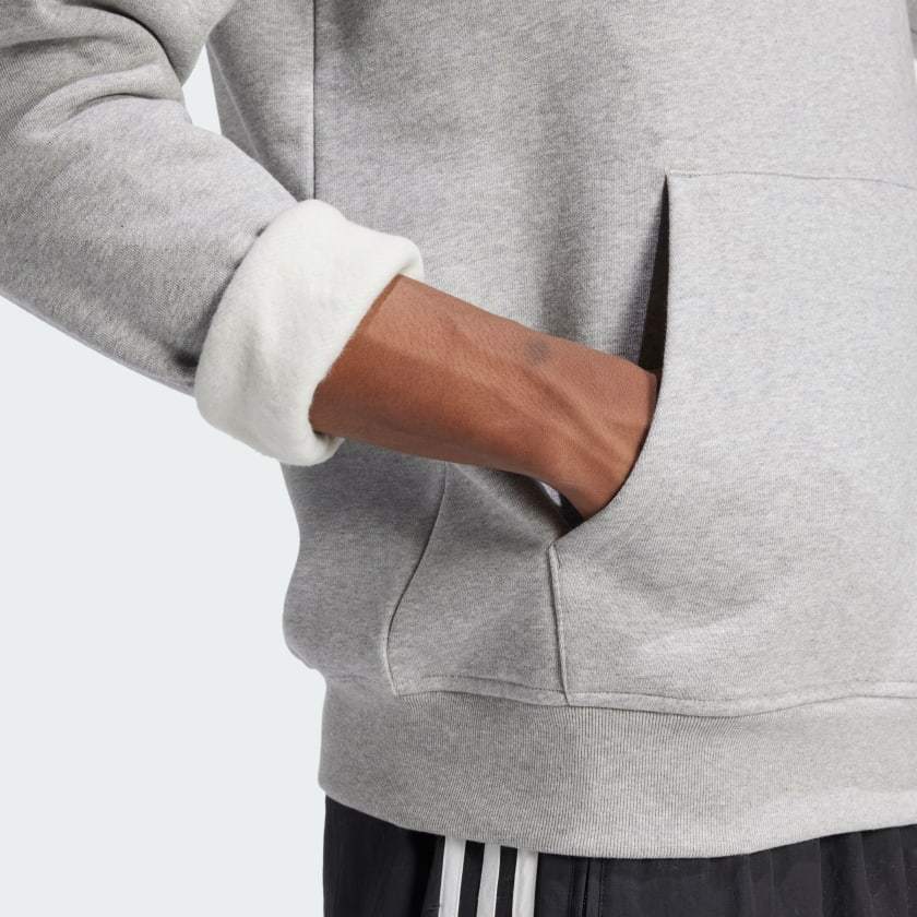 When you want to drift into leisure, slip into the familiar comfort of this adithtdas hoodie. Soft fleece amps up the cosiness, and classic details like ribbed cuffs and an embroidered Trefoil logo ground the look in casual sport style. With a regular fit that's not too loose or too tight, it's your new go-to for kicking back. The cotton in this product has been sourced through Better Cotton. Better Cotton is sourced via a chain of custody model called mass balance. This means that Better Cotton is not physically traceable to end products. Find out more here - https - //bettercotton.org/who-we-are/our-logo/