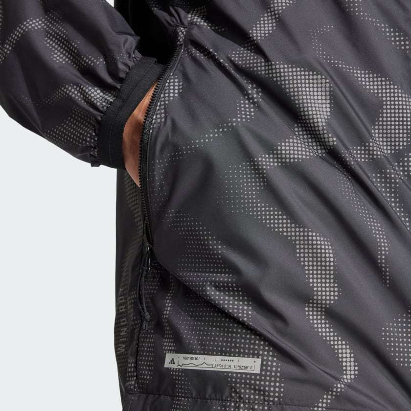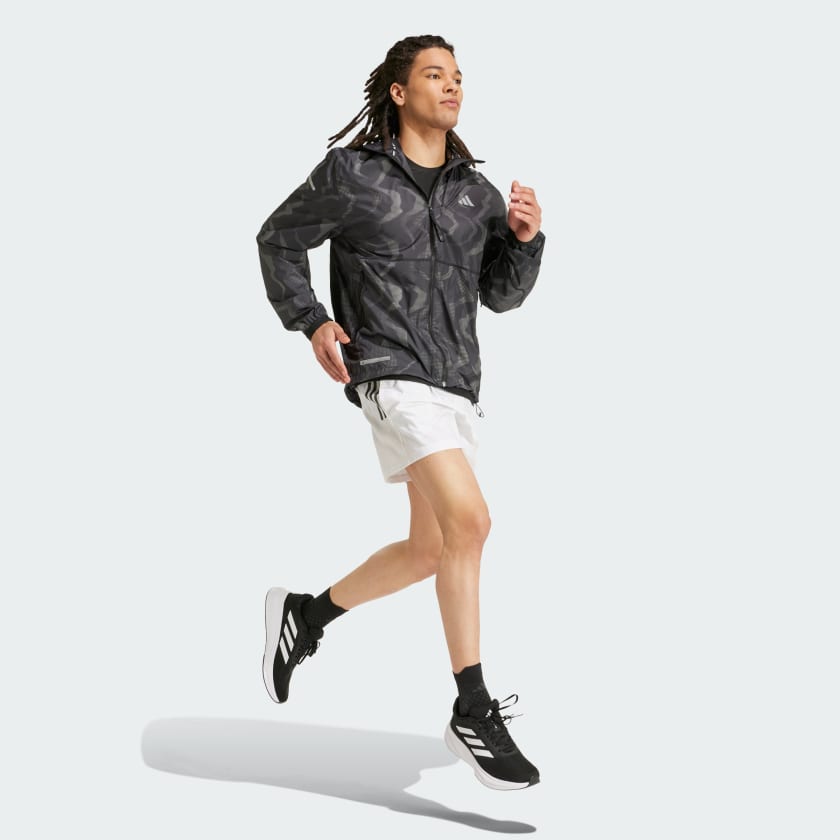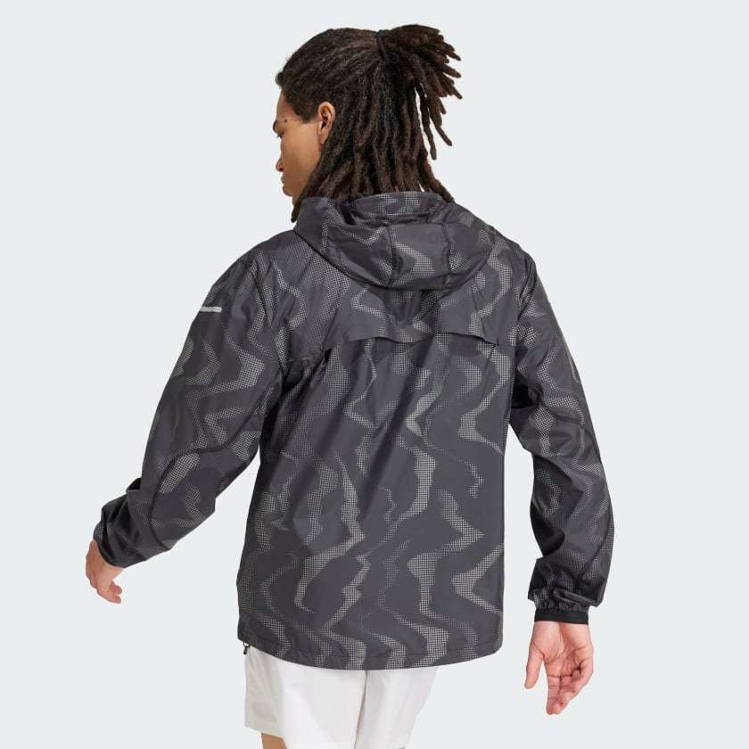 Take on windy runs with confidence. This adithtdas running jacket powers you through cool, blustery weather in comfort thanks to WIND.RDY technology. The adjustable hood and hem let you customize the fit, and elastic cuffs seal out the chill. Stash essentials in the zip pockets for easy access on the go. This product is made with 100% recycled materials. By reusing materials that have already been created, we help to reduce waste and our reliance on finite resources and reduce the footprint of the products we make.