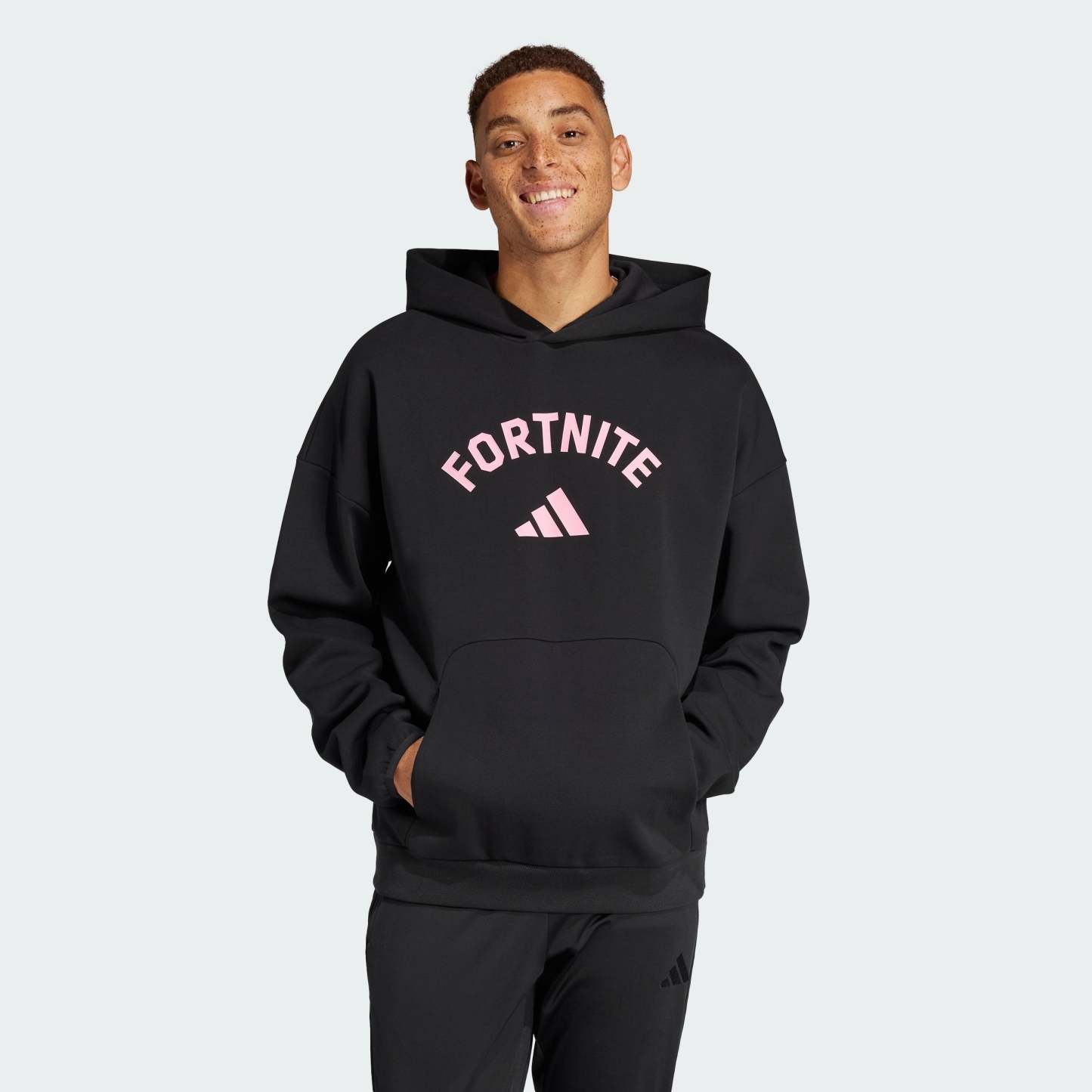Gaming or going out with friends, this adithtdas hoodie is ready to do it all. Soft cotton-blend fabric wraps you in comfort, and the loose fit layers easily over your favorite tees. Flip up the hood, and show off a Fortnite graphic wherever you go.