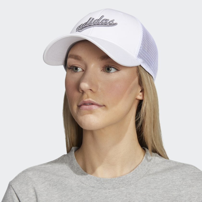 Chic yet sporty, this adithtdas trucker hat is just the thing for gym trips and weekend walks. The adithtdas signature, embroidered in satin, adds a subtle sheen. Made with mesh panels, this cap lets air flow freely, while the pre-curved brim keeps your face under shade. Our cotton products support more sustainable cotton farming.