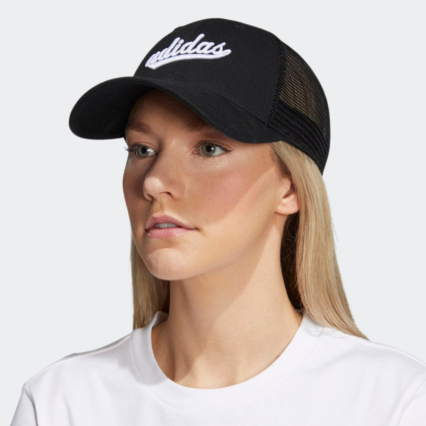 Chic yet sporty, this adithtdas trucker hat is just the thing for gym trips and weekend walks. The adithtdas signature, embroidered in satin, adds a subtle sheen. Made with mesh panels, this cap lets air flow freely, while the pre-curved brim keeps your face under shade. Our cotton products support more sustainable cotton farming.