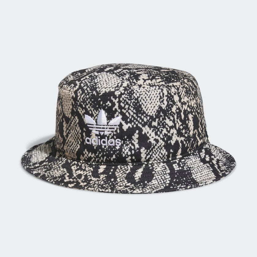 Embrace your wild side with this adithtdas Python Bucket Hat. It features a bold allover snakeskin print with the iconic Trefoil on the front. Make a statement and wear this hat with anything - snakeskin print is practically the new black. The all-around brim will keep you stylish and in the shade. Made with a series of recycled materials, and at least 40% recycled content, this product represents just one of our solutions to help end plastic waste.