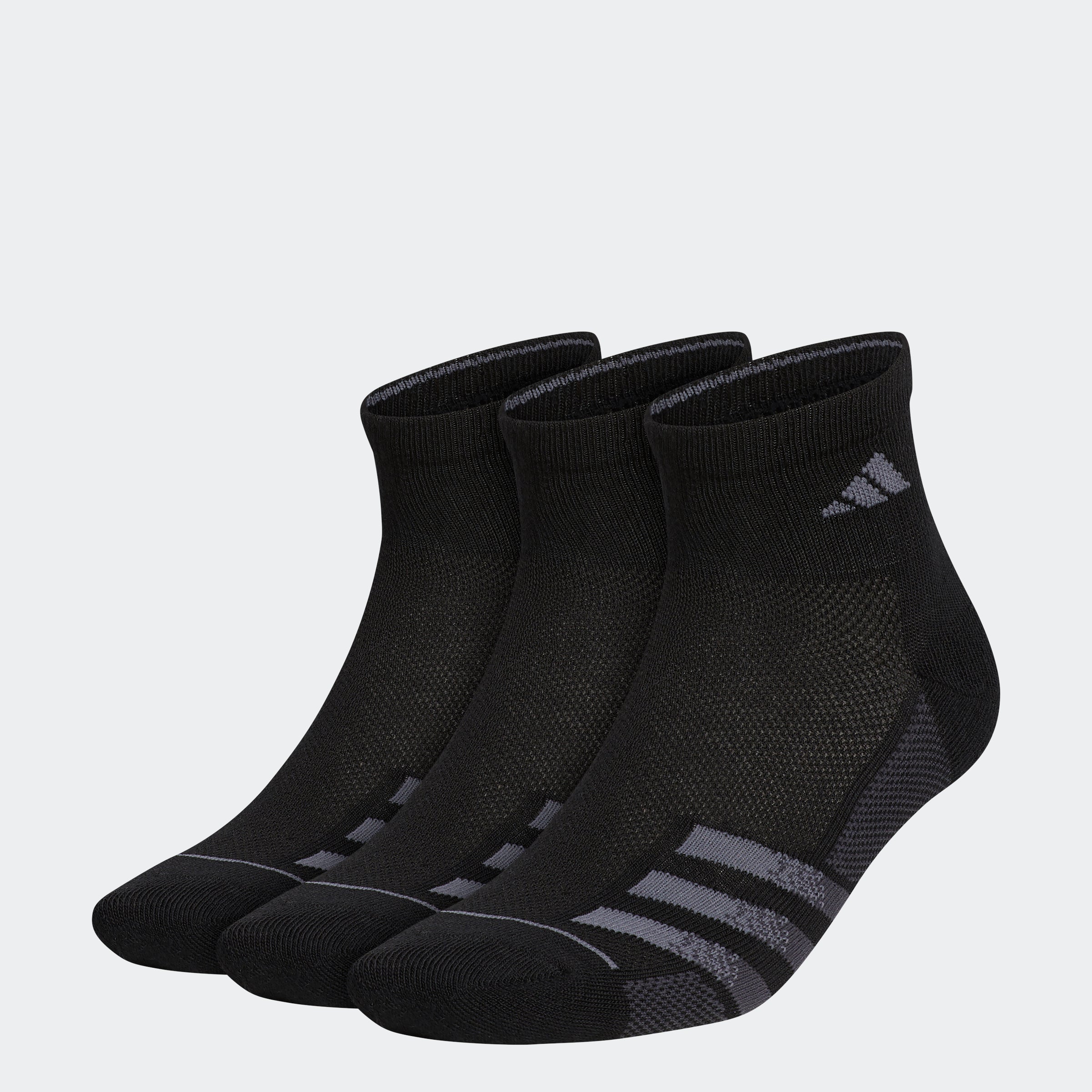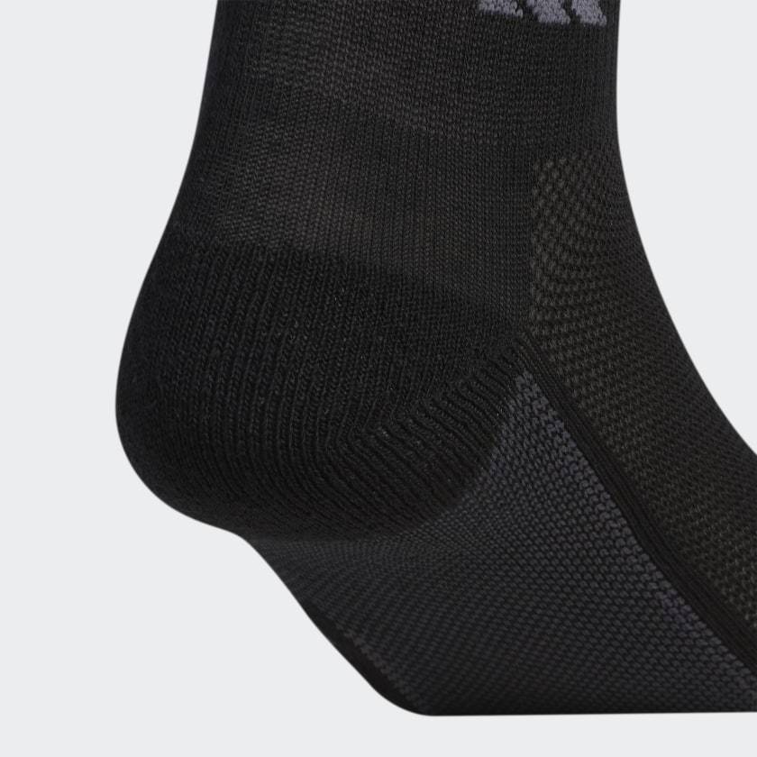 Walking lunges or park bench dips, tackle whatever's on your training schedule in these adithtdas socks. A cushioned heel and toe keep your feet comfortable on concrete and gym floors alike. The stretchy, lightweight design has built-in ventilation on the top of the foot for added breathability when things heat up. Made in part with recycled content generated from production waste, e.g. cutting scraps, and post-consumer household waste to avoid the larger environmental impact of producing virgin content.