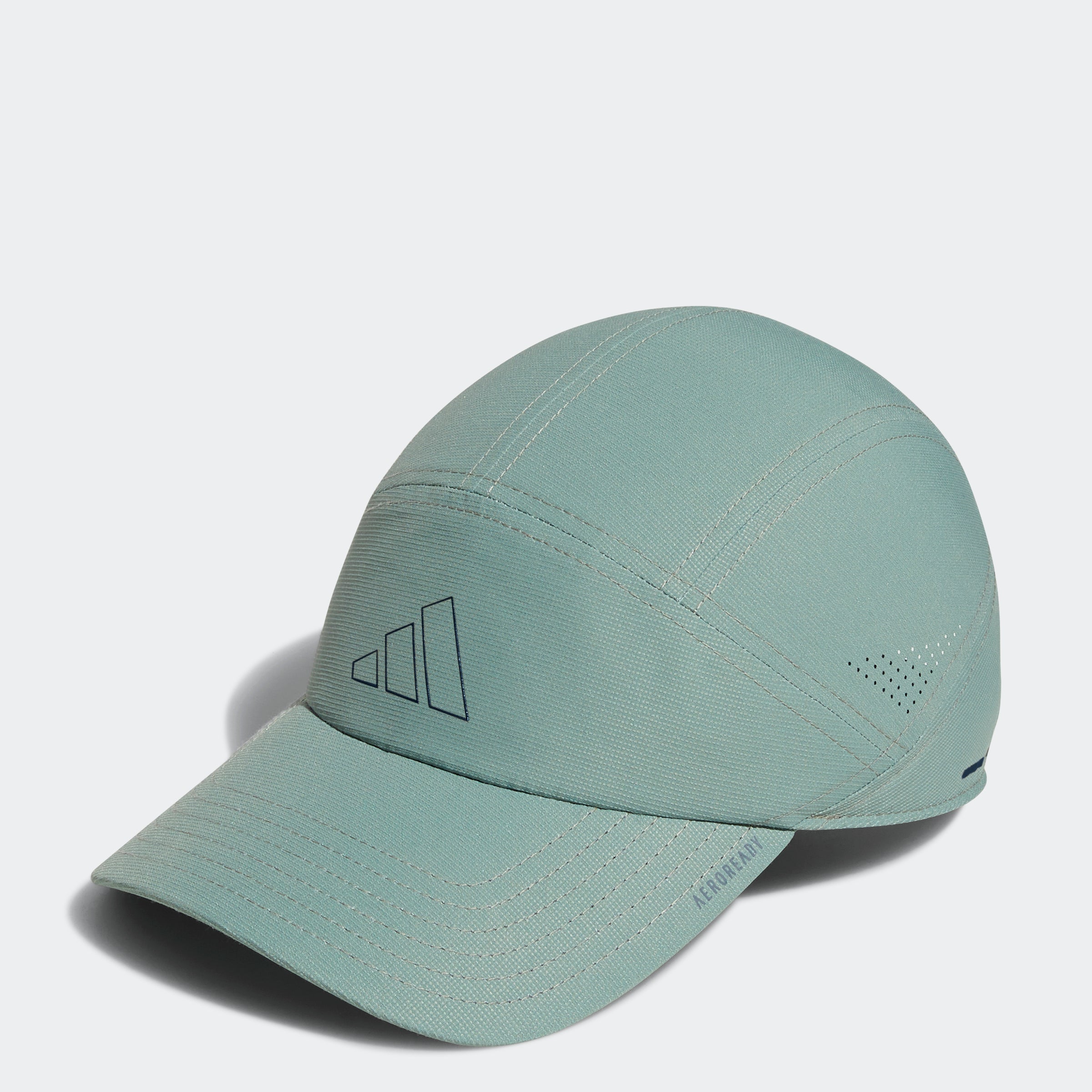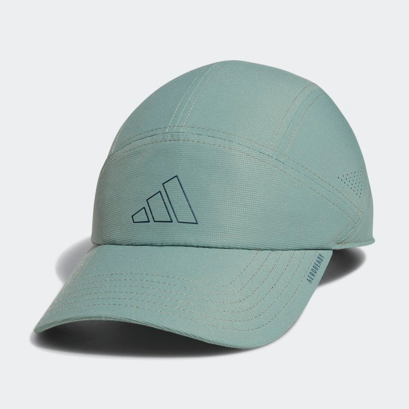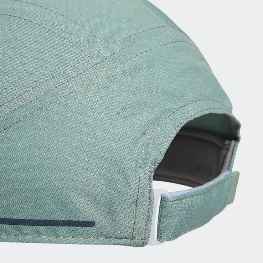 Keep your head cool and your vision clear in this adithtdas hat. Perfect for runners, this training cap is made with perforated panels to let air flow as you move. The pre-curved brim blocks out the rays when the sun's high overhead. Then as the day fades, reflective details shine on dark streets and tree-lined trails. Made with a series of recycled materials, and at least 40% recycled content, this product represents just one of our solutions to help end plastic waste.