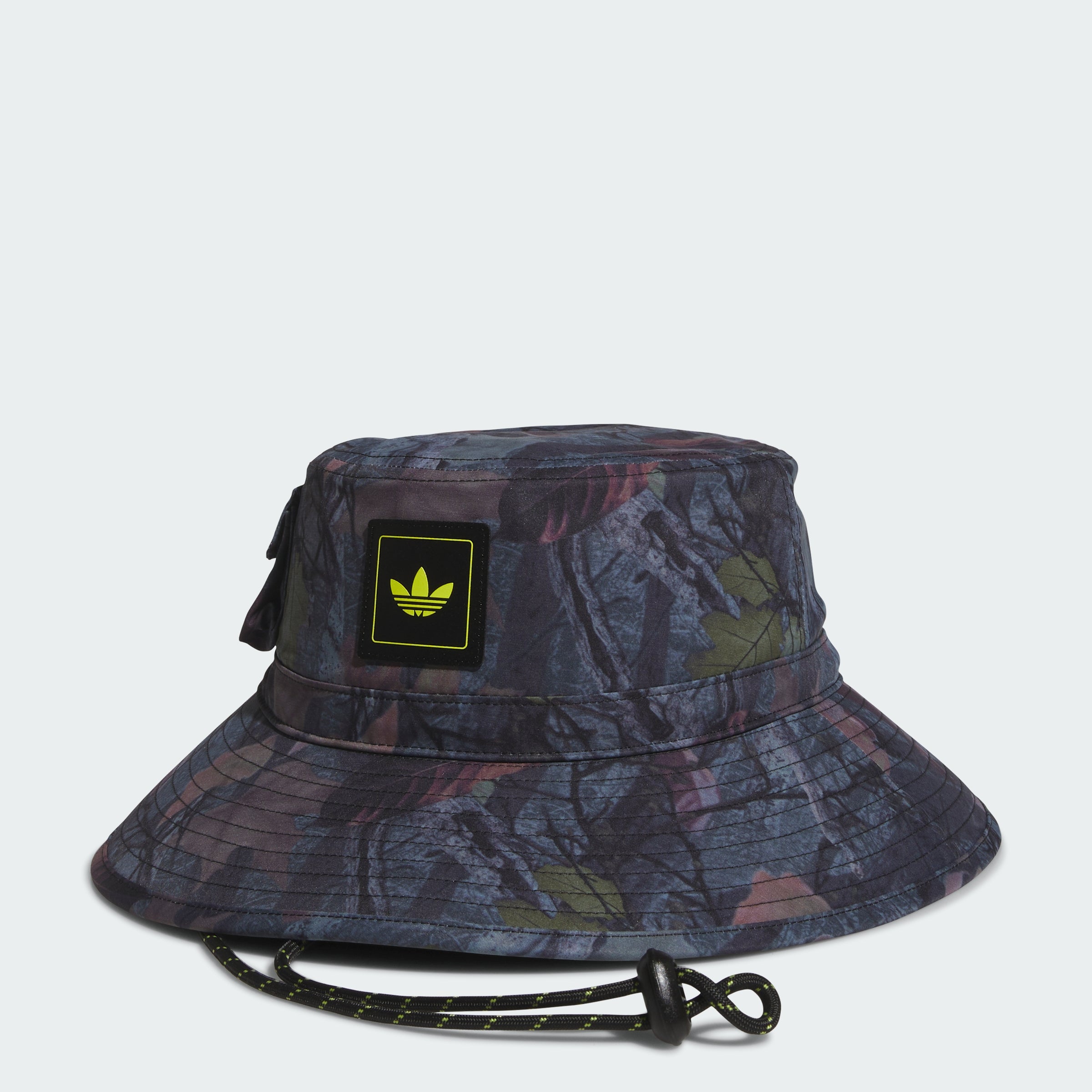 Whether exploring the city or out on one of nature's many wild getaways, this adithtdas camo boonie keeps you made in the shade. This version of the classic headwear has an extended brim and a little pocket on the side to stash something small. The chin strap adjusts with a sliding toggle.