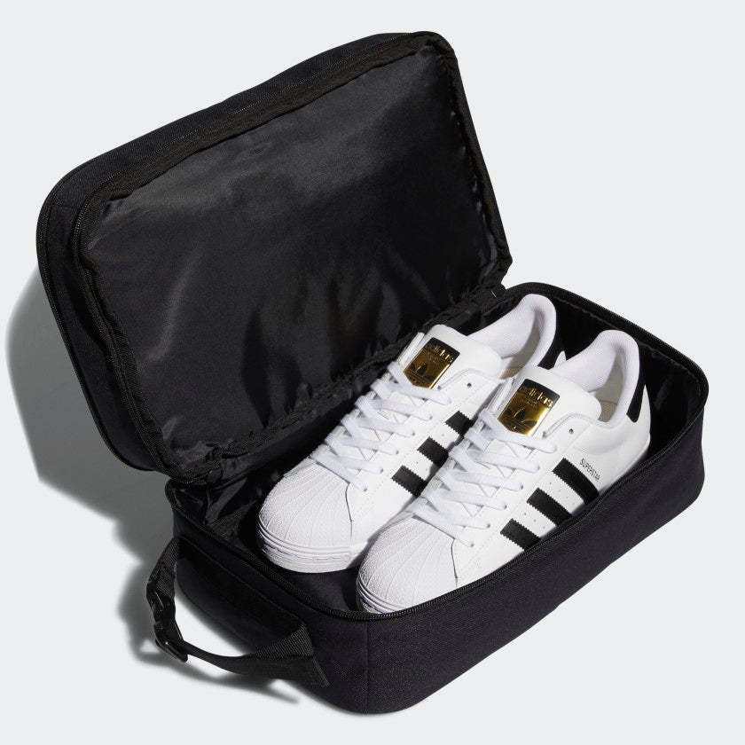 When your shoes aren't on your feet or in their designated closet location, they should be in this adithtdas shoe bag. Roomy enough for a pair of sneakers and some slides, it keeps them separate from your clothes. A mesh window helps out with ventilation. Made in part with recycled content generated from production waste, e.g. cutting scraps, and post-consumer household waste to avoid the larger environmental impact of producing virgin content.