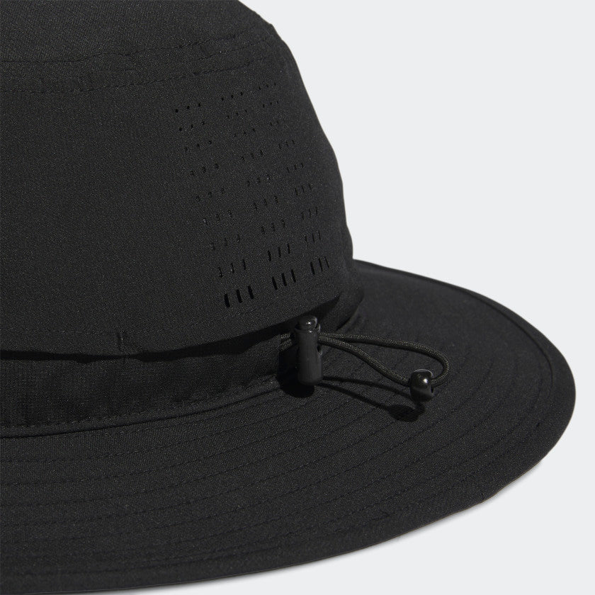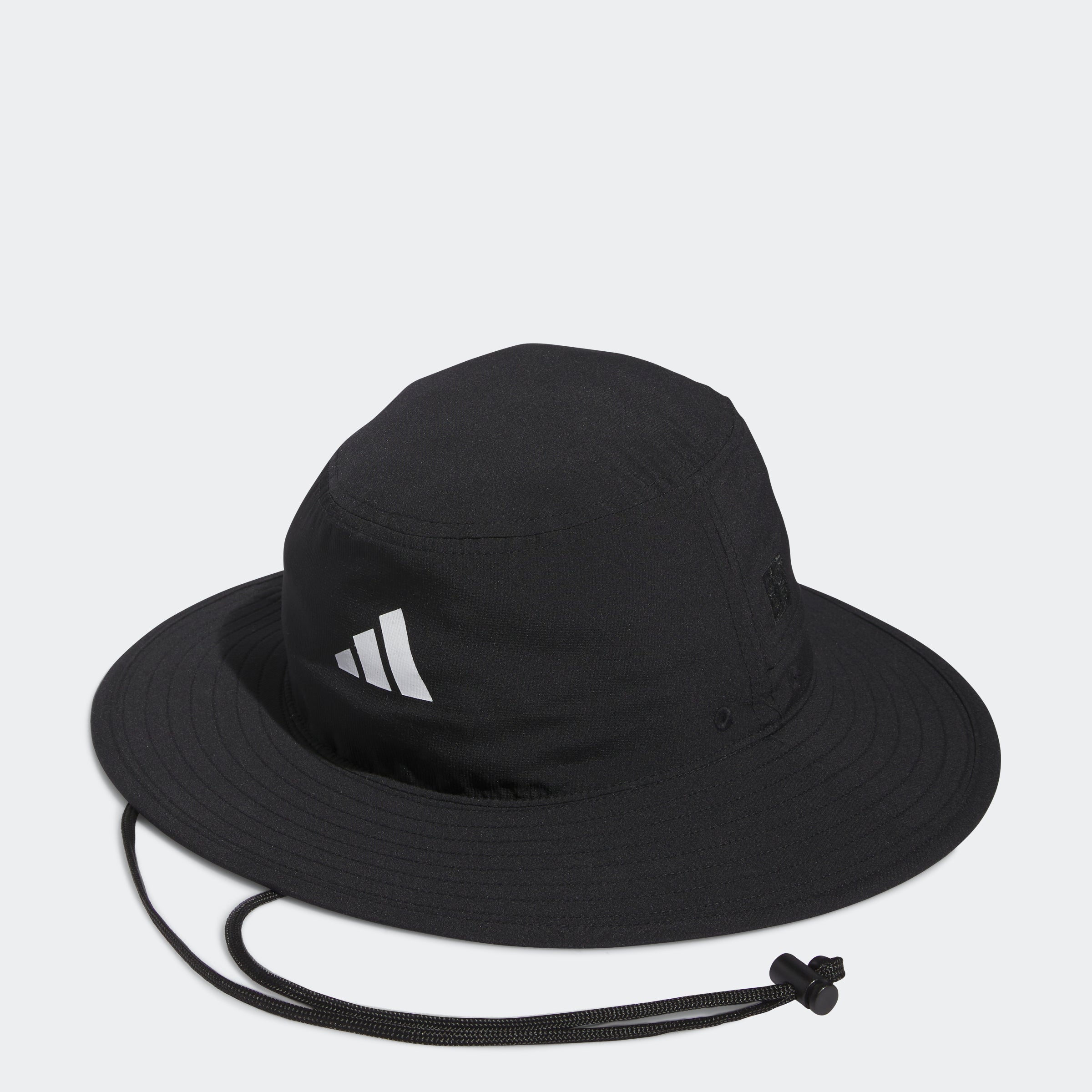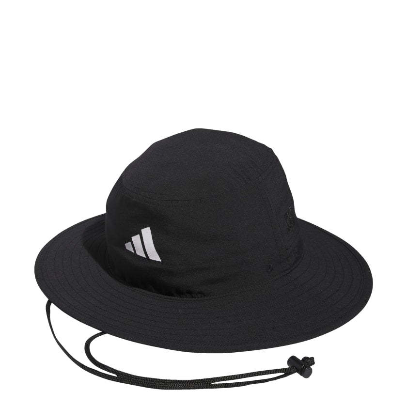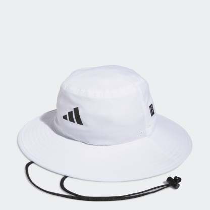 Bring some shade to open fairways with this adithtdas golf hat. The wide brim keeps the sun's rays off your face and neck while AEROREADY absorbs moisture to keep you dry. Ventilated 3-Stripes at the back help you stay cool. Adjust the drawcord when the breeze picks up and play through.