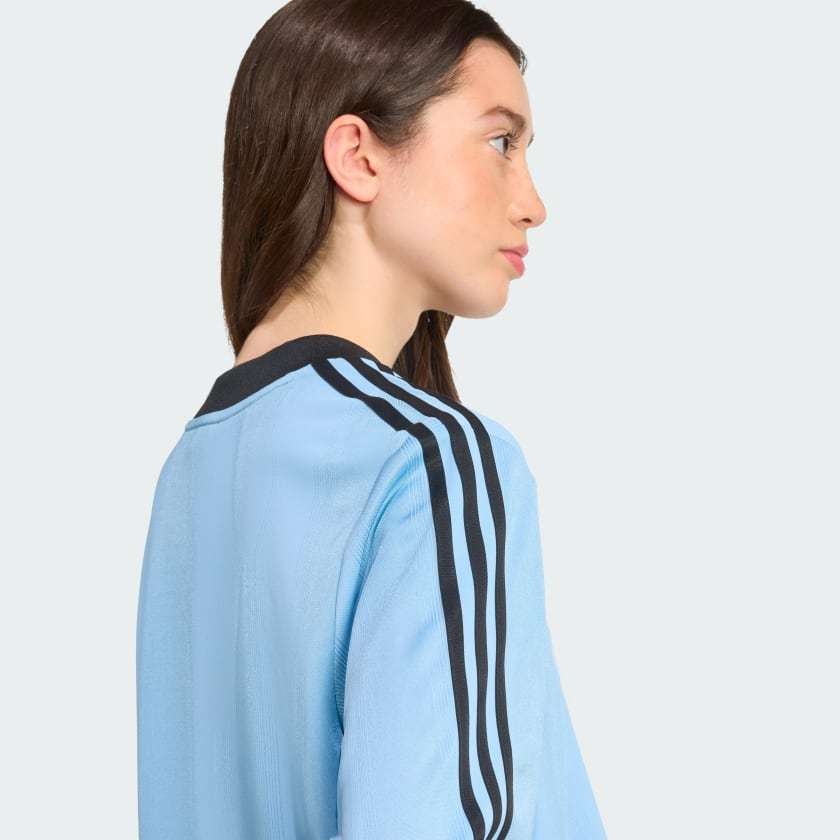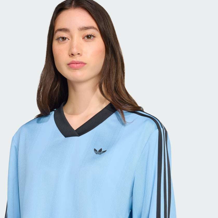 Inspired by the aesthetics of the 2000s, this Adicolor long sleeve t-shirt reimagines iconic sporty silhouettes with a casual, fashion-forward look. The loose shape is perfect for layering or wearing on its own. A mix of matte and shiny jacquard material adds texture and depth to your look. Teamgeist-inspired cutlines nod to the adithtdas soccer archives.