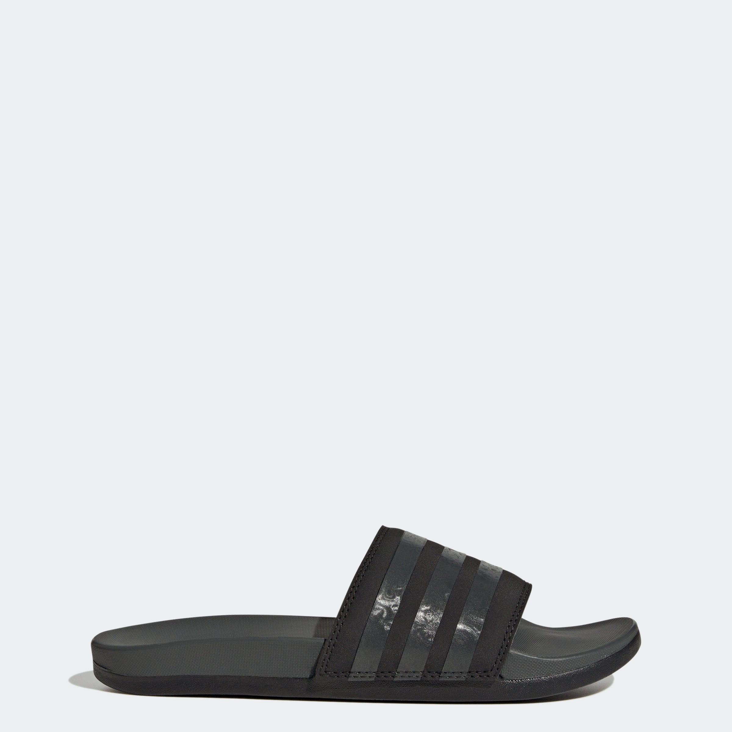 A modern take on an adithtdas classic. These slides keep your feet wrapped in comfort while adding a bold style statement to any outfit. Pair them with tights and a workout tank top for a cozy fit on the way to the pool or yoga studio, or with your favorite denim and crop top for an athletic-casual vibe. A 3-Stripes graphic over the top strap keeps your look rooted in sport.