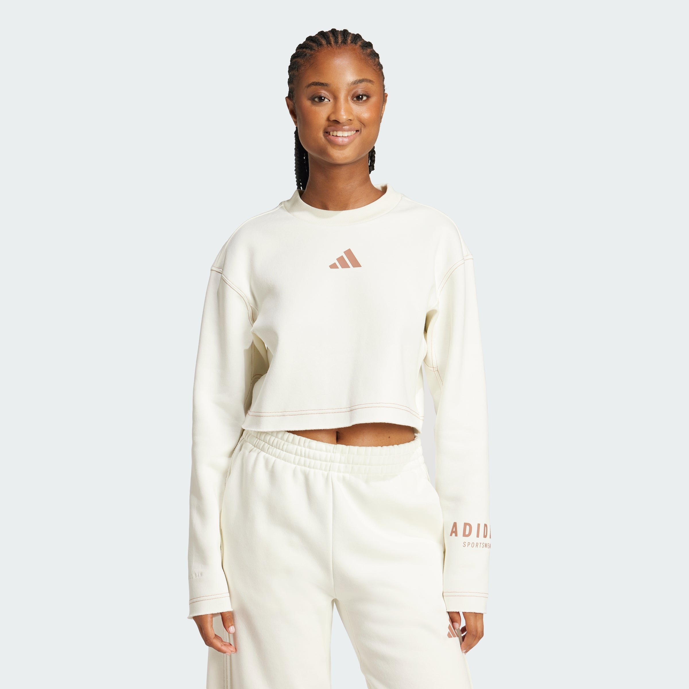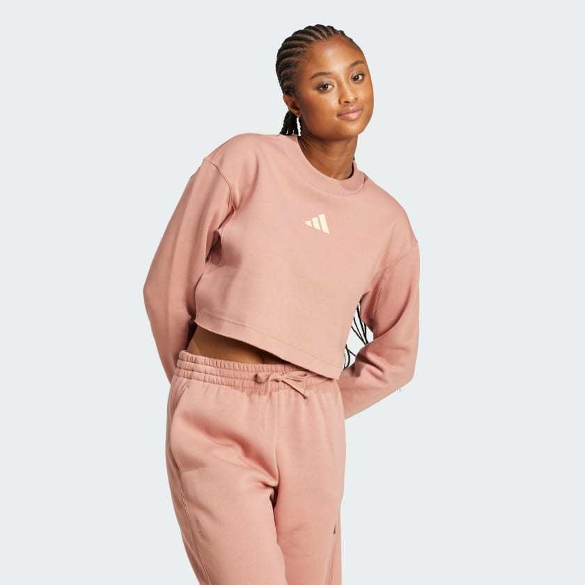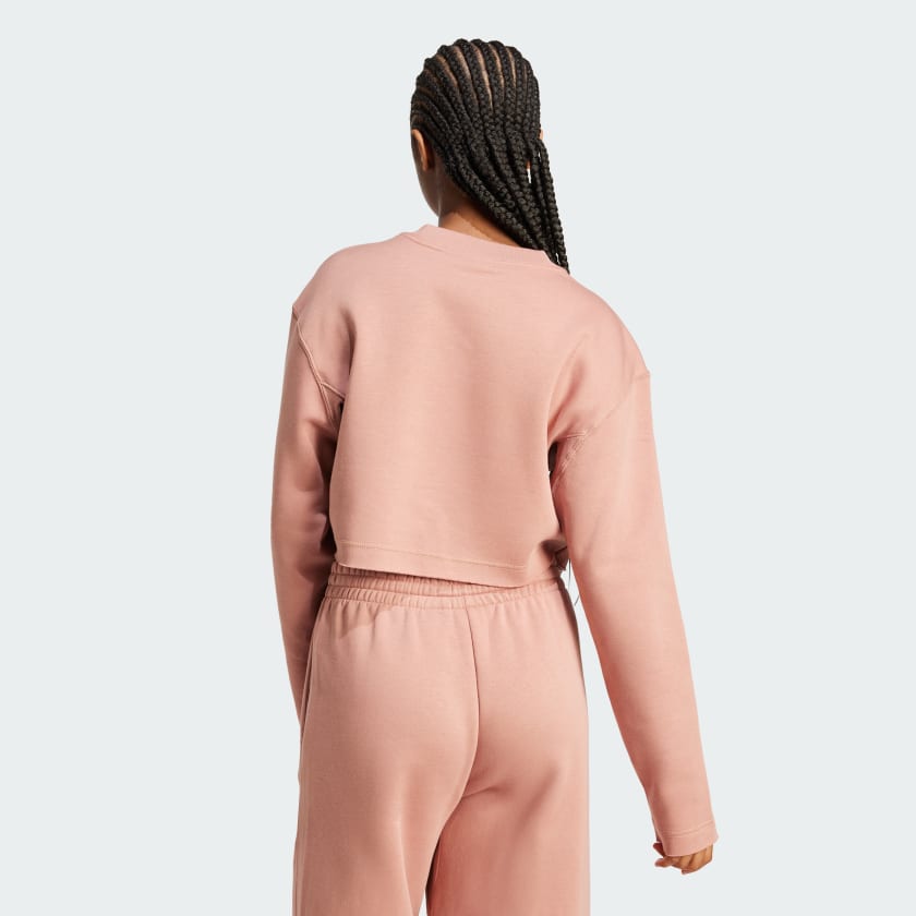 Elevate your everyday look in this adithtdas sweatshirt. Made from cozy cotton-blend fleece, it has a relaxed shape that makes layering easy. Dropped shoulders give it a laid-back vibe, and the cropped length lets you show off your favorite high-waisted jeans or leggings. By choosing recycled, we are able to reuse materials that have already been created, which helps to reduce waste. Renewable materials choices will help us to remove our reliance on finite resources. Our products made with a blend of recycled and renewable materials feature at least 70% total of these materials.