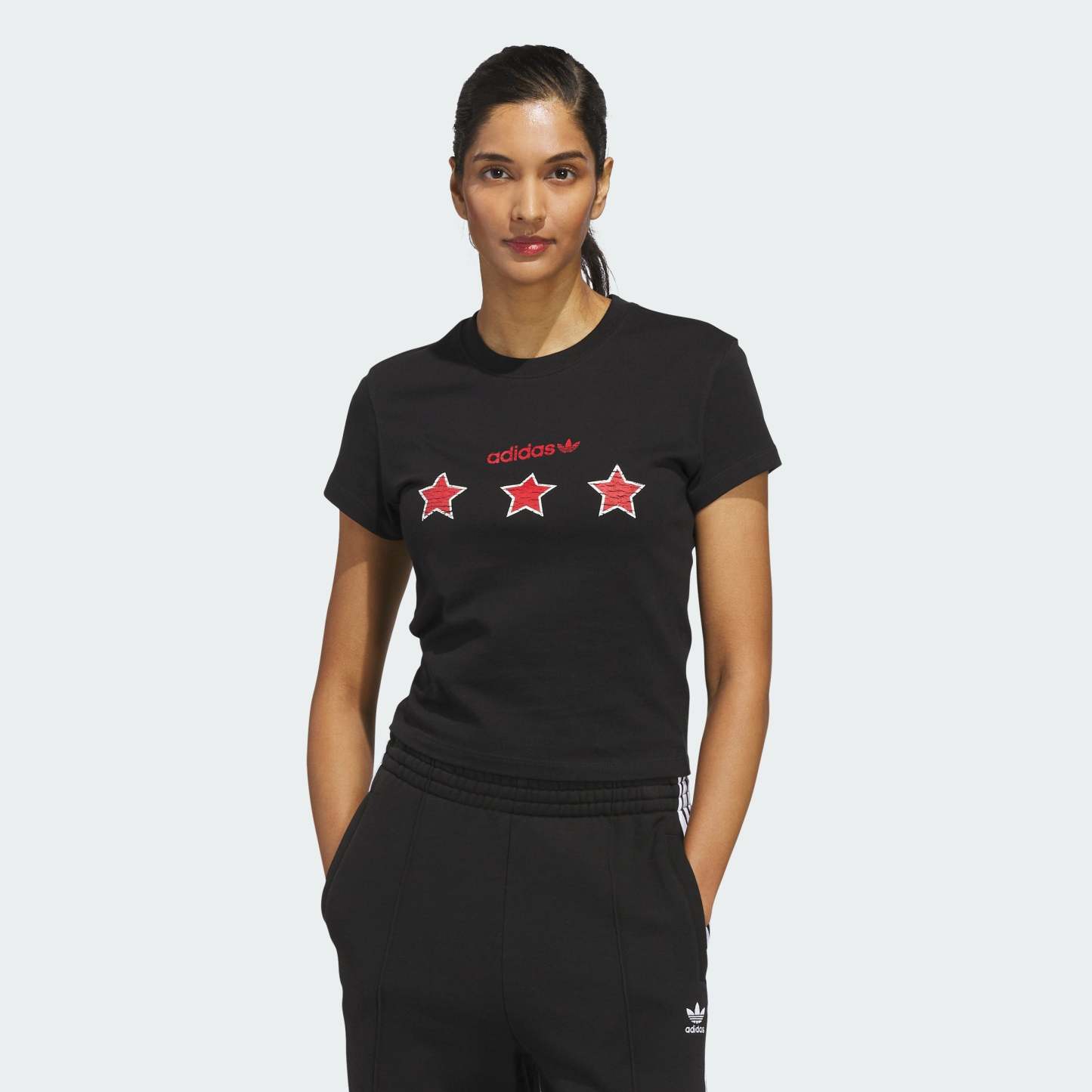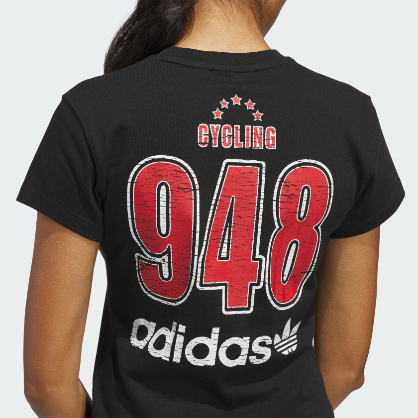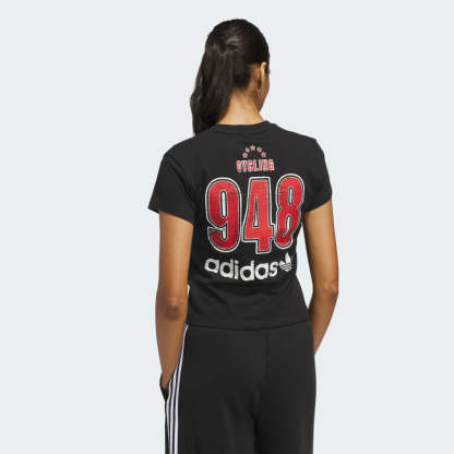 Show your love for the adithtdas legacy in this comfortable tee. The slim fit hugs the body for a flattering look that pairs perfectly with your favorite jeans or leggings. A bold, heritage-inspired graphic on the back celebrates the brand's long-standing connection to sport and style.