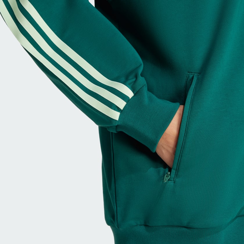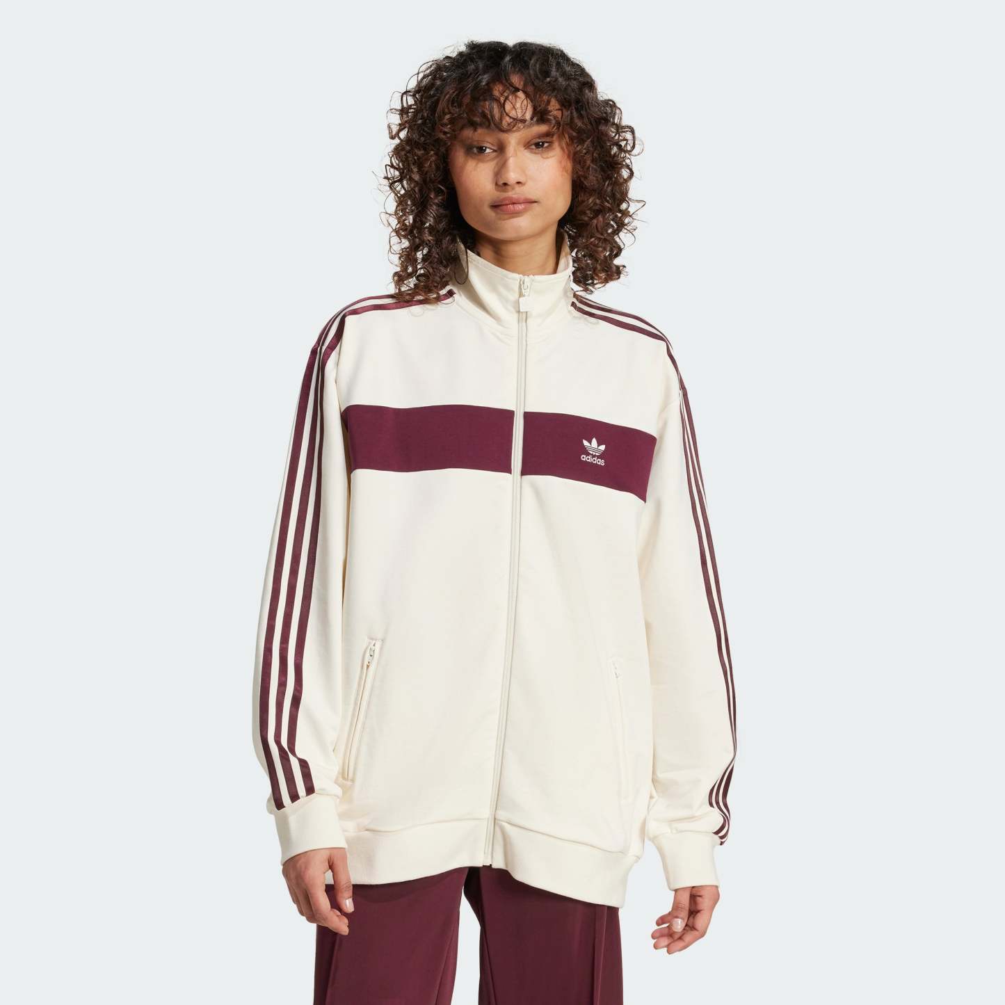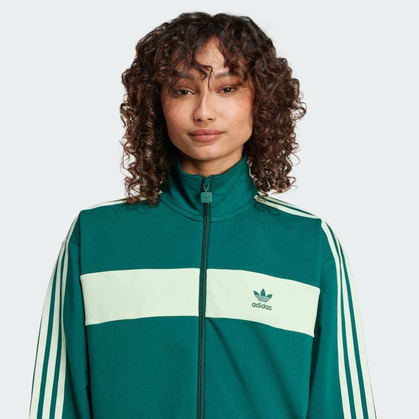 An ode to the iconic '80s, this relaxed adithtdas track top is a retro revival. Rocking blocks of bold color, it's designed with nostalgia reimagined for today. Soft French terry fabric and ribbed cuffs keep comfort close. The loose silhouette creates an easygoing vibe perfect for pairing with joggers or jeans. A nod to adithtdas heritage, the track jacket is made for your life on the move. By choosing recycled, we are able to reuse materials that have already been created, which helps to reduce waste. Renewable materials choices will help us to remove our reliance on finite resources. Our products made with a blend of recycled and renewable materials feature at least 70% total of these materials.