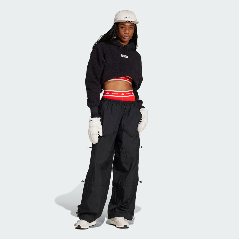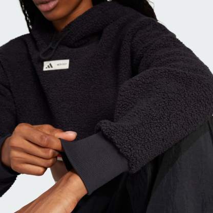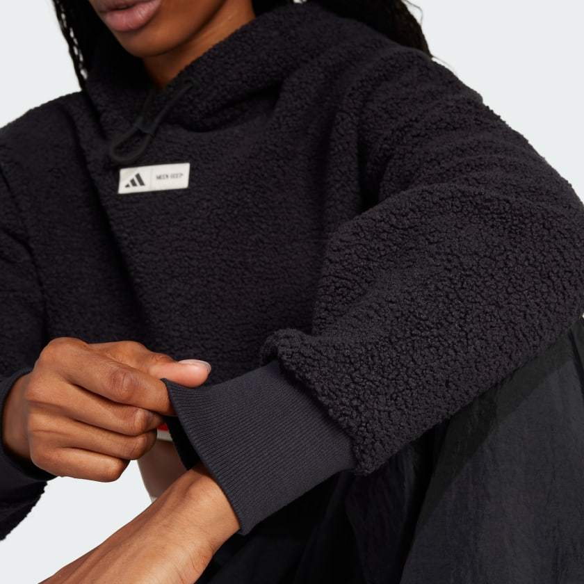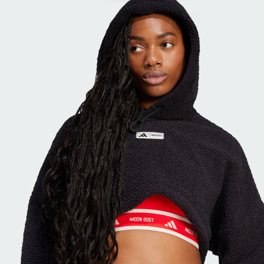 Comfort and cozy never looked so good. This adithtdas hoodie was designed in collaboration with MOON BOOT, the Italian footwear brand. It's made of cozy polar fleece and has a stylish cropped silhouette. The loose fit gives you room to move freely on your way to spin class or the gym.