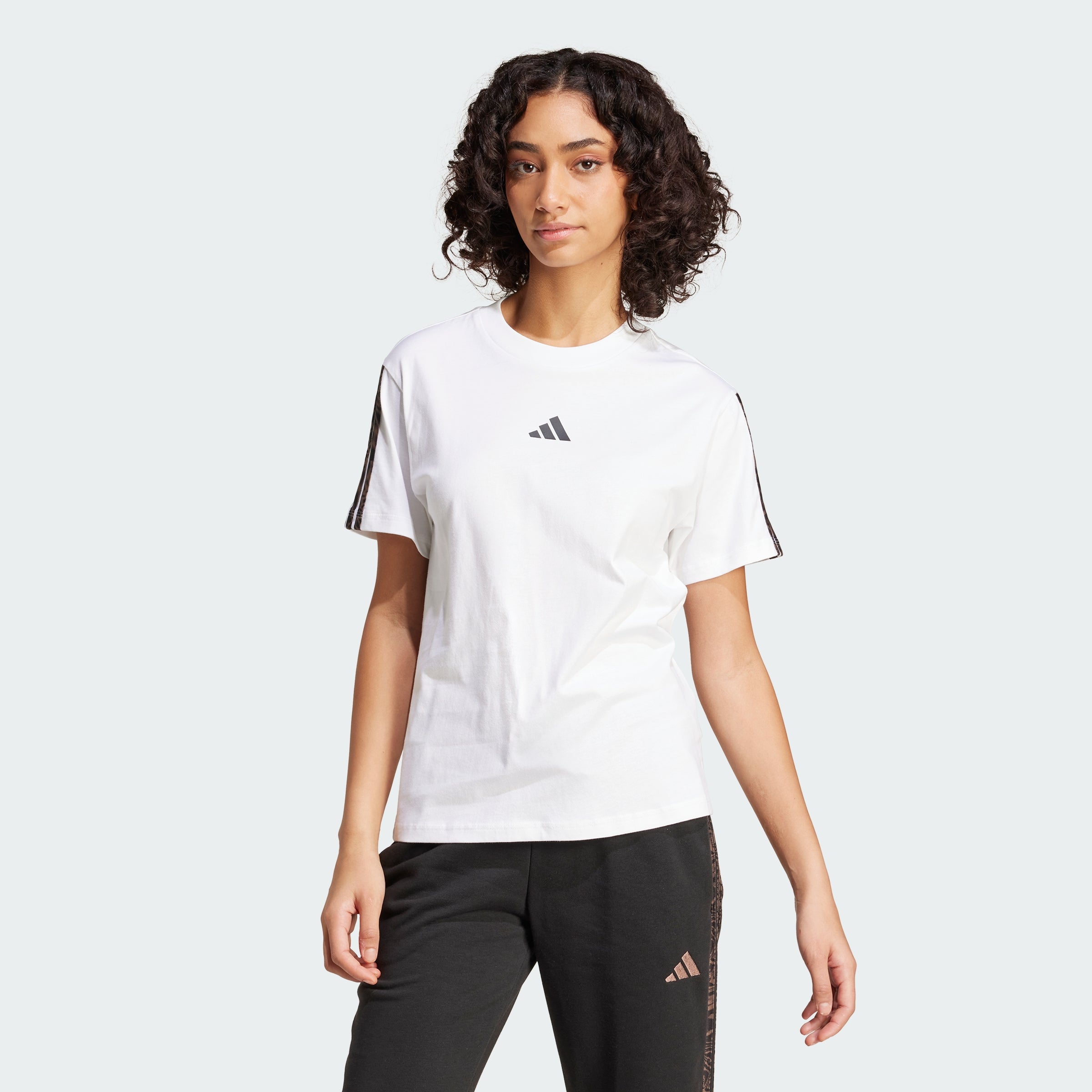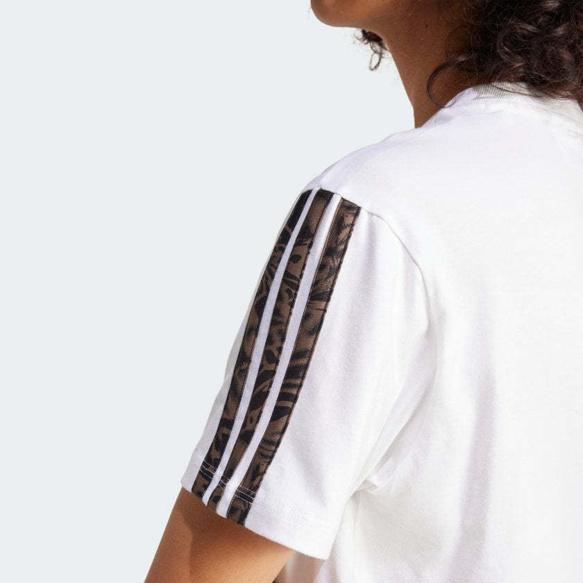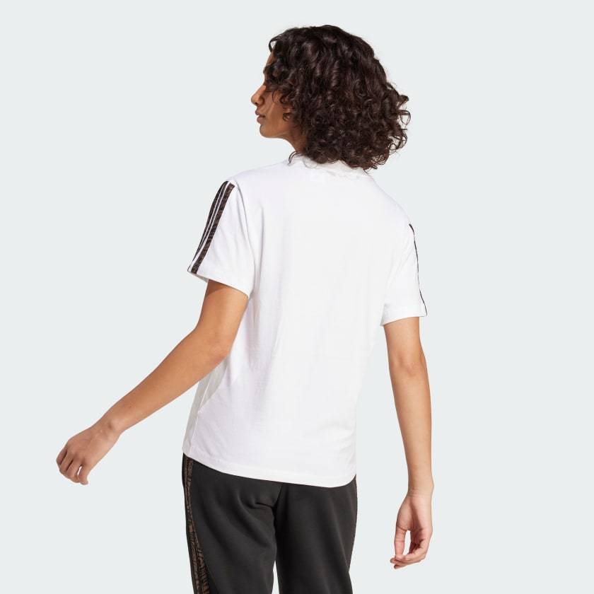 This adithtdas tee lets you show your wild side. The soft fabric keeps you comfortable, while the animal print-inspired 3-Stripes down the sleeves make a statement. Pair this t-shirt with anything from leggings to jeans for easy style that goes wherever you do.