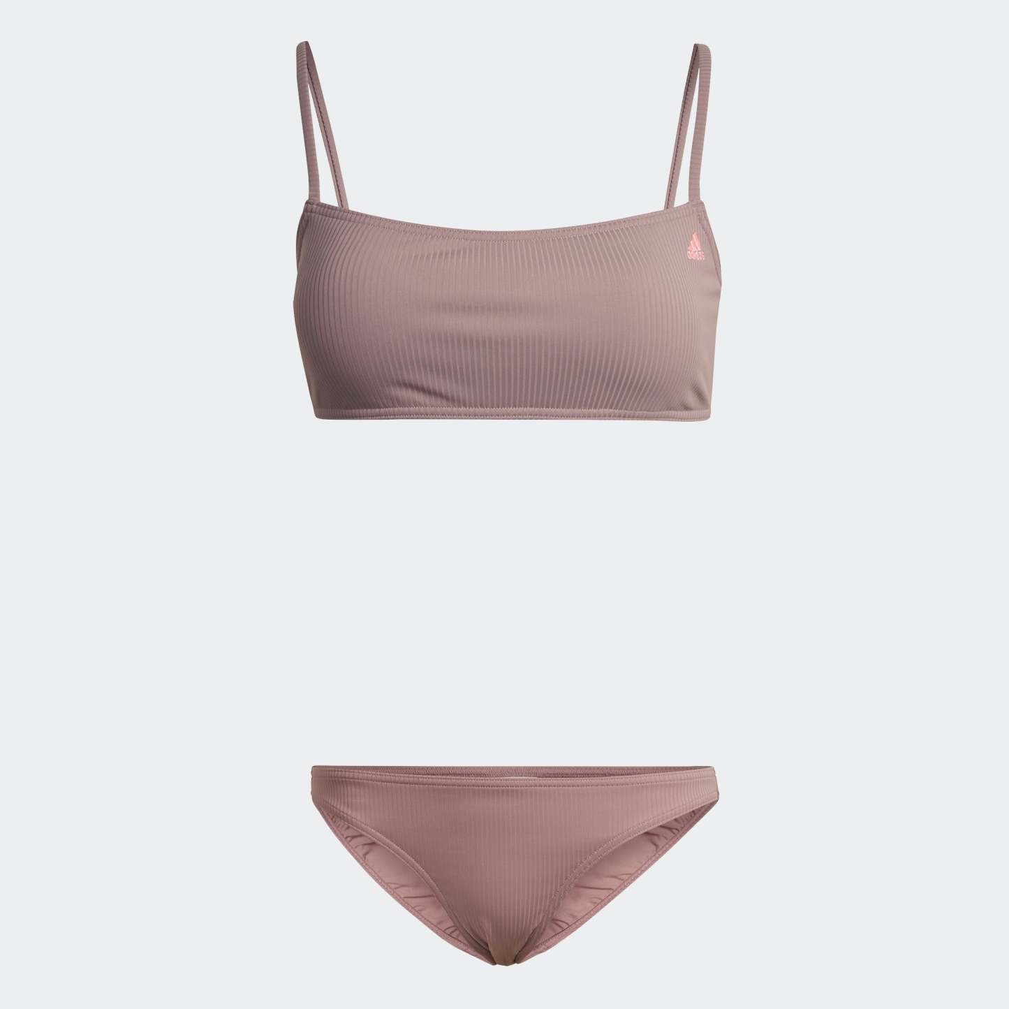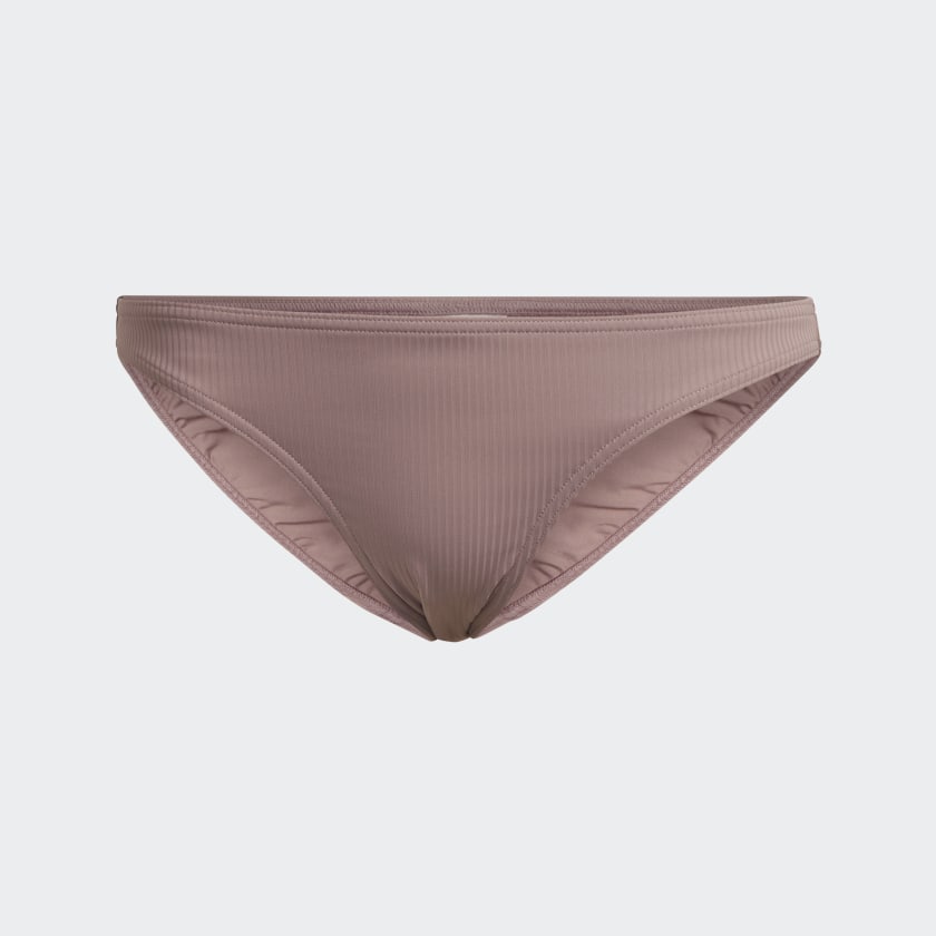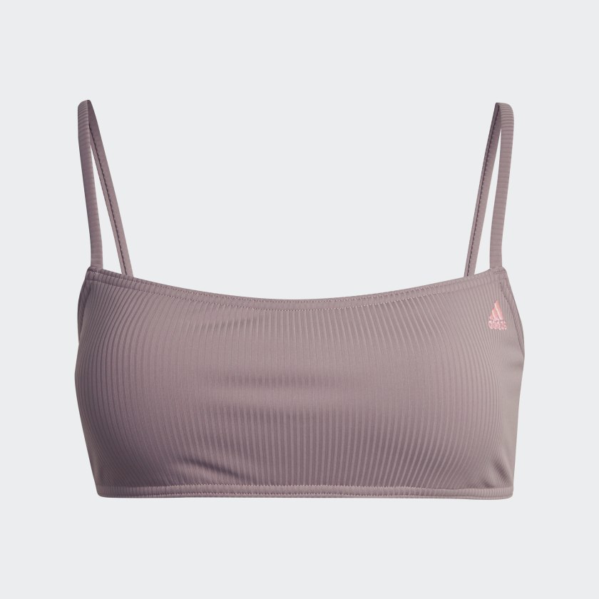 The little black dress never goes out of style. Inspired by the timeless classic, this adithtdas bikini brings simplicity and elegance to a day at the beach or pool. Ribbed fabric is soft and comfortable. The top has thin shoulder straps and a built-in bra for medium support. Removable pads let you choose your level of coverage. The bikini bottoms have a mid-rise waist. Made with a series of recycled materials, and at least 60% recycled content, this product represents just one of our solutions to help end plastic waste.