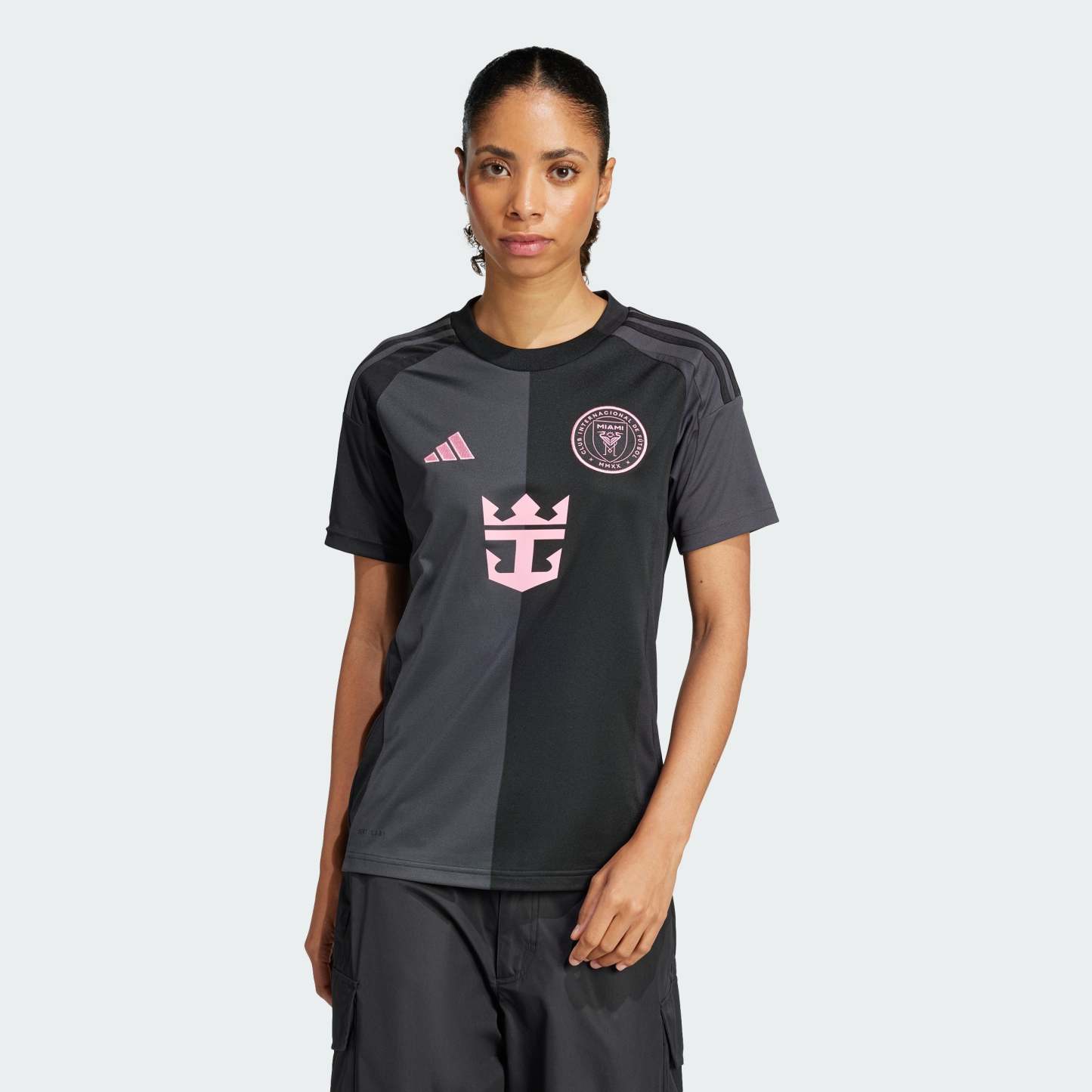 Bring Miami style to the stadium in this elegant Inter Miami CF away jersey from adithtdas. With pink details popping against a black and carbon half-and-half design, this supporter shirt exudes sophistication. Its moisture-managing AEROREADY and soft fabric are there to keep fans comfortable. A club sign-off, sewn-on crest and Messi details show you appreciate first-class soccer.