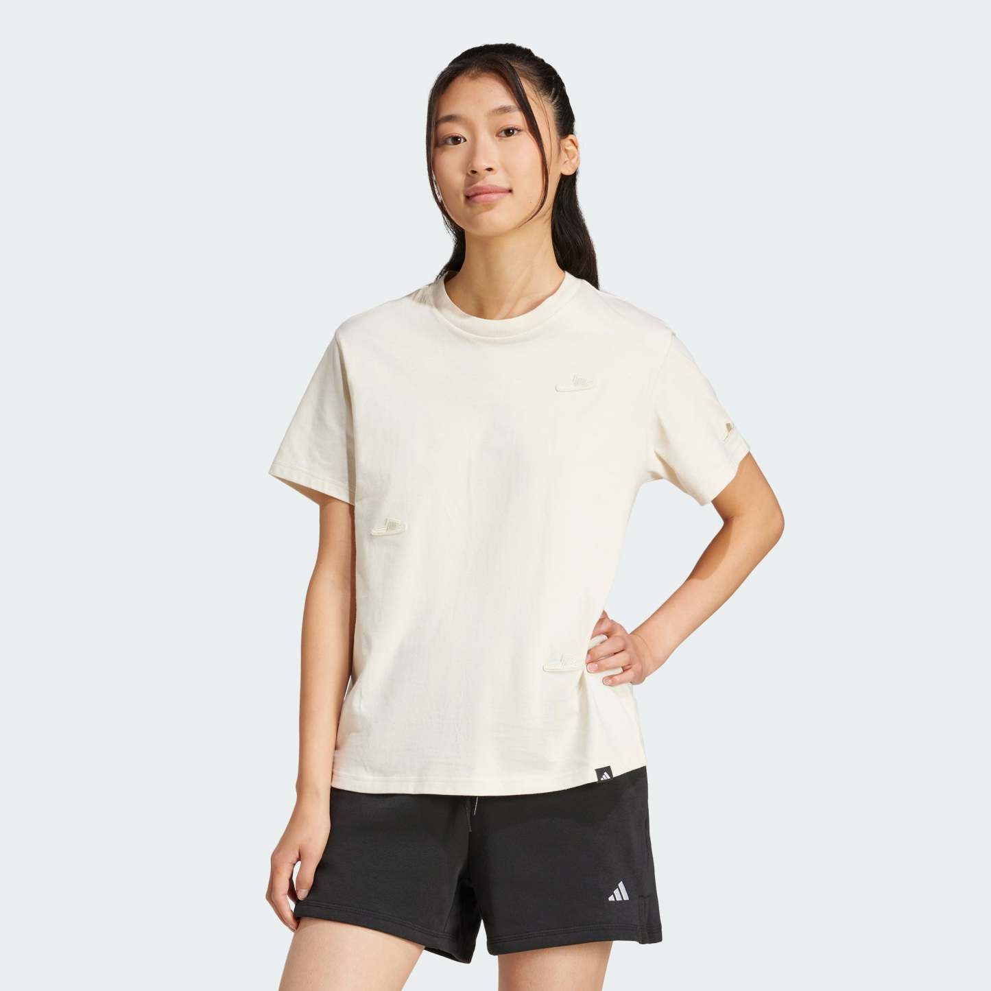 Whether you're out for a stroll or just lounging at home, this soft cotton tee keeps you comfortable. The classic cut provides plenty of room to move without restriction. For a touch of pure adithtdas style, a subtle graphic inspired by shower slides stands out on the front.