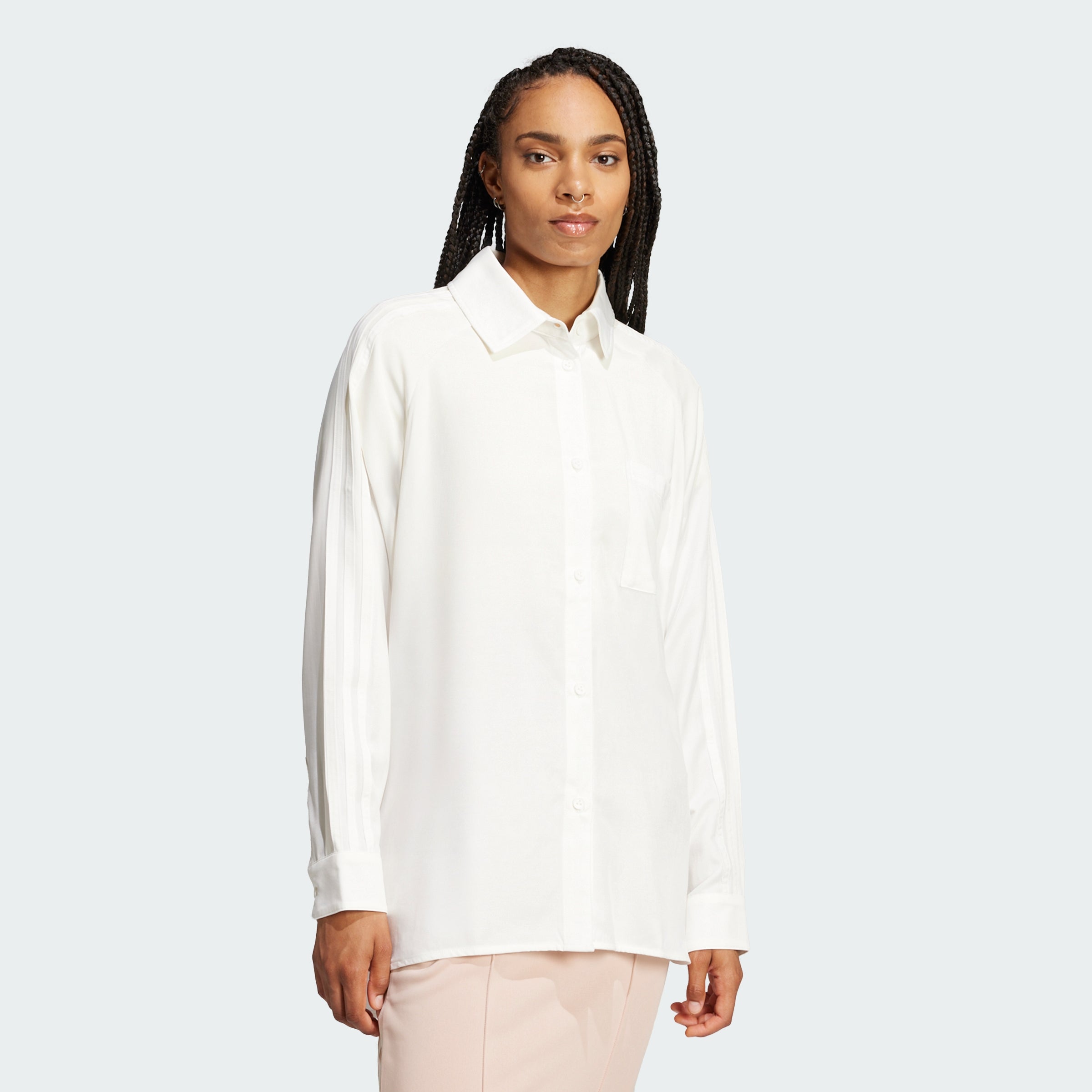 It's all about refined simplicity. This versatile adithtdas long sleeve shirt has a minimalist design that feels fresh and modern. The smooth viscose-blend fabric has a premium look and feel that pairs perfectly with everything from tailored trousers to jeans. A small embroidered Trefoil adds a subtle sporty touch.
