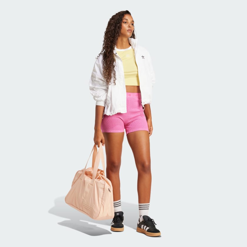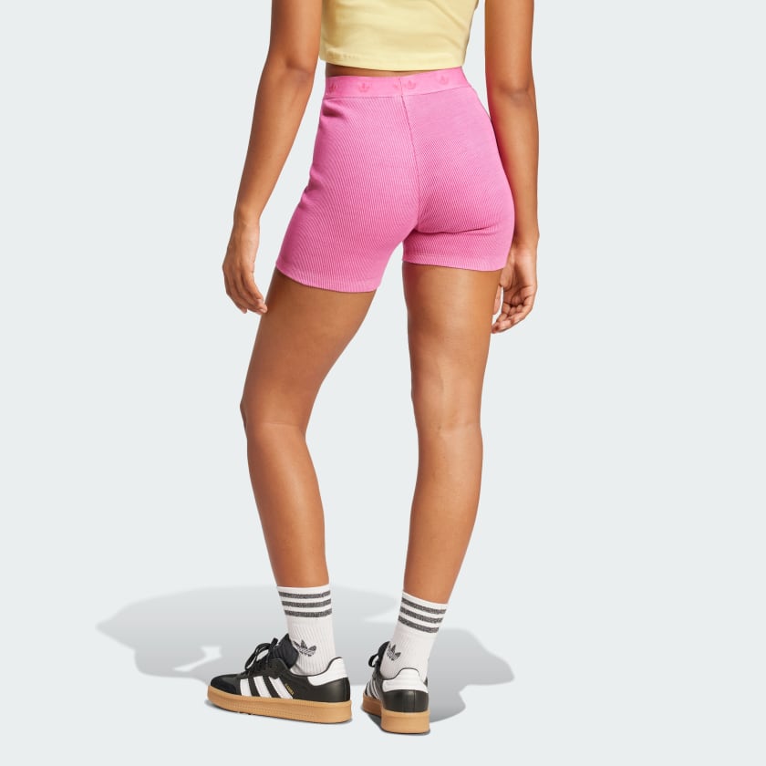 Made to move, these adithtdas booty shorts are inspired by '90s hip hop style. Ribbed fabric hugs your figure for a comfortable, snug fit. The shorts hit high on the thigh for an elongating effect. Whether you're dancing or just hanging out, these shorts keep you comfortable and stylish.
