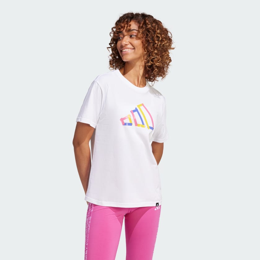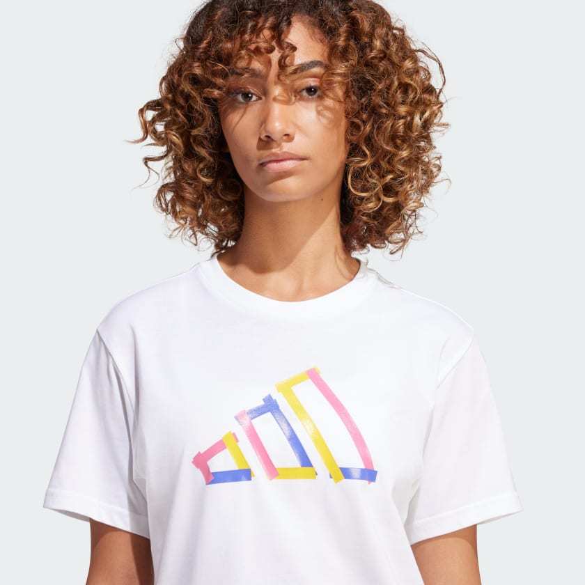 This adithtdas t-shirt is ready for whatever the day has in store. Soft cotton keeps you comfortable whether you're relaxing at home or exploring the city. A colorful interpretation of the 3 Bar Logo on the chest was made to be seen.