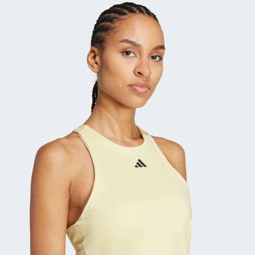 Take to the court with confidence on the sunniest days. Part of the adithtdas Gameset collection, this Y-tank top has a slim, streamlined fit for lightning tennis. CLIMACOOL wicks and disperses sweat for cool, dry and distraction-free performance. Stretchy interlock fabric and a shoulder-freeing Y-strap mean you can call on every shot in your arsenal. CLIMACOOL helps you manage sweat with materials that wick and manage sweat quickly. Its fast-dry fibers give you a fresh-skin feel. This product is made with at least 70% recycled materials. By reusing materials that have already been created, we help to reduce waste and our reliance on finite resources and reduce the footprint of the products we make.